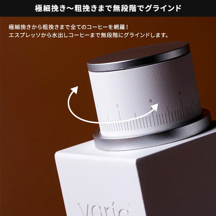 【2500円OFFクーポン】【正規販売店】Varia VS3 グラインダー 第二世代 電動コーヒーミル コーヒーグラインダー 電動ミル 電動グラインダー 静音 無段階挽き目 カップ付き ベロー付き コーヒー ハンドドリップ ヴァリア 家庭用