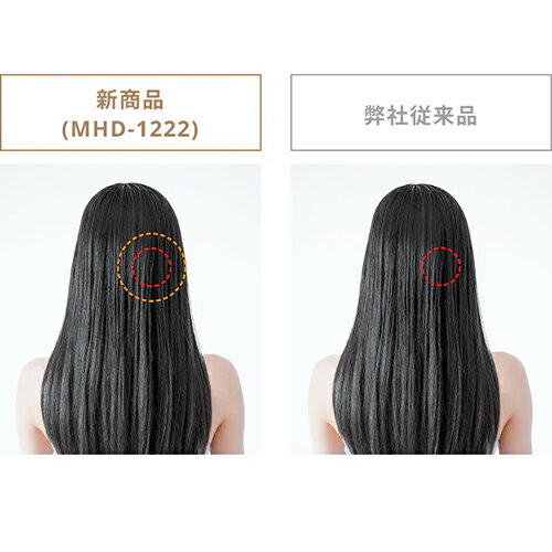 ↑↑↑正確な在庫状況は上記バナー「在庫状況を確認する」をクリックして頂き、必ずご確認ください。 ■大風量2.3m3/分とやさしく広がる風で、速乾も仕上がりも手に入れる、 シンプルドライヤー■心地よく乾かし、さらっとまとまるMHD1222Wサイズ(W/D/H): 約 206x77x195mm(ノズル装着時) 約 165x77x195mm(ノズルなし時)質量: 約 470g(ノズル装着時) 約 430g(ノズルなし時)電源・電圧:AC100V消費電力:1200Wコード長:約 1.7mやさしく広がる大風量で素早く心地よく乾かす
