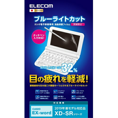 ↑↑↑正確な在庫状況は上記バナー「在庫状況を確認する」をクリックして頂き、必ずご確認ください。 ■「ブルーライト」を約32%カットします。■時間の経過とともに気泡が目立たなくなるエアーレスタイプです。■抗菌加工により、フィルム上に付着した雑菌の繁殖を抑えます。■光の映り込みを抑え見やすい画面を実現する、反射防止タイプです。■硬度の高いハードタイプのフィルムで、液晶画面をキズやホコリからしっかり保護します。DJPTP032BL材質:PET(接着面:シリコン膜)対応機種:2019年CASIO XD-SRシリーズサイズ:幅127.3mm×高さ65.3mmその他:ブルーライトカット/エアーレス/防指紋/ハードコート/抗菌加工/反射防止フィルム「ブルーライト」をカットする電子辞書用液晶保護フィルム。