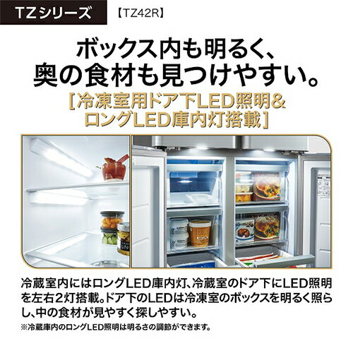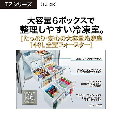 ご注文確認後、当店より「*設置環境入力のお願い*」メールを送信いたします。メール記載のURLより、設置環境、配送希望日などの設問に必ずご回答ください。※設置環境により追加料金が発生する場合がございます。※離島や山間部等、一部地域につきましては、追加の配送料金が掛かる場合や、設置・工事などできない地域がございます。エリア外の場合はキャンセルとさせていただきます。 家電リサイクルご希望の場合は、メールでご案内する「設置環境情報入力ページ」よりお申し込みください。※リサイクル回収対象は家電リサイクル法に定められた4品目(テレビ・冷蔵庫・洗濯機(衣類乾燥機)・エアコン)に限ります。※家電リサイクル料金、リサイクル回収費用が追加で発生します。 リサイクル料金と収集運搬料金について ※発送手配は、メールでご案内する「設置環境情報入力ページ」の設問ご回答後となりますので、必ずご回答ください。※代金引換でのご注文は承れません。 長期保証をご希望のお客様は下記の表より「商品+長期保証」のページへ移動してご注文ください。 冷蔵庫ドア数:4ドア冷蔵室ドア開閉タイプ:観音開き冷凍室位置:下段定格内容積:420L(JIS C 9801:2015)冷蔵室内容積:274L(JIS C 9801:2015)冷凍室内容積:146L(JIS C 9801:2015)脱臭機能:有除菌機能:-ノンフロン:○特長 冷蔵室: 大容量6ボックスで整理しやすい冷凍室 ボックス内も明るく、奥の食材も見つけやすい ひと目で見渡せるから食品ロスを抑える たっぷり収納、レイアウトも自在 ひと目で見渡せ、整理しやすい収納 冷凍室: 冷凍室内の温度変化を抑えて、おいしさを逃がさない 冷凍食材に霜がつきにくい ドリップ抑制機能で、うまみ長持ち 低温だから長期保存の味わいに差がつく 野菜室: かがまず、ラクな姿勢で野菜を出し入れ 使いかけの野菜を新鮮保存に 食材の作り置き料理もおいしく冷凍保存 旬鮮野菜ルームがパワーアップ 製氷室: 自動製氷 お手入れ簡単、はずせる製氷ユニット&大容量アイスボックス年間消費電力量:273kWh/年(JIS C 9801:2015)省エネ基準達成率:100%:目標年度 2021年メーカー保証:1年必要設置スペース:幅 710×高さ 1875×奥行 645mm寸法:幅 700×高さ 1825×奥行 635mm質量:約118kg付属品: