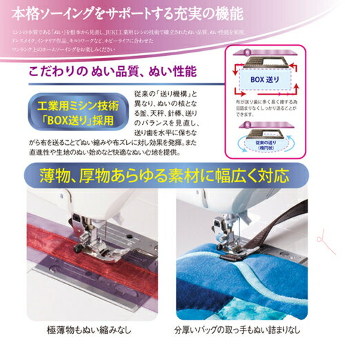 ↑↑↑正確な在庫状況は上記バナー「在庫状況を確認する」をクリックして頂き、必ずご確認ください。 長期保証をご希望のお客様は下記の表より「商品+長期保証」のページへ移動してご注文ください。※長期保証は法人加入や業務使用、譲渡や再販はご利用いただけません。 ■工業用ミシンの技術で確立されたぬい品質、ぬい性能を実現。■広いソーイングスペース■自動糸切り機能付きフットコントローラー■ワンランク上のボタン穴かがりHZLF400JPタイプ:コンピュータミシン自動糸通し:○自動糸調子:○押え圧調整:○送り歯の枚数:7枚スタートストップスイッチ:○スピード調節:○フットコントローラー:付属照明ランプ:○便利機能 豊富な縫い模様80種類 工業用ミシン技術「BOX送り」採用 送り力の大幅な向上 ぬい模様、針基線の位置を液晶パネルで表示 押え圧調整 クイック下糸セット&下糸巻き LEDランプ搭載(2箇所) ドロップフィードメーカー保証:1年寸法:幅 445×高さ 210×奥行 291mm質量:約9.8g付属品: 基本押え(本体にセット) ボタン穴かがり押え 手動ボタン穴かがり押え 裁ち目かがり押え ブラインドステッチ押え ファスナー押え ボビン 専用ドライバー リッパー 針セット 掃除用ブラシ 糸巻き当て座大・中 フットコントローラー 取扱説明書
