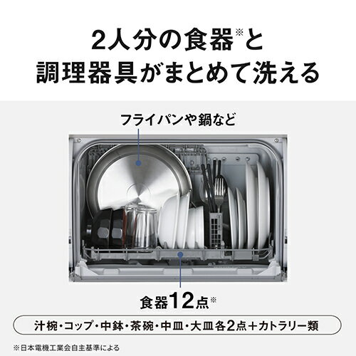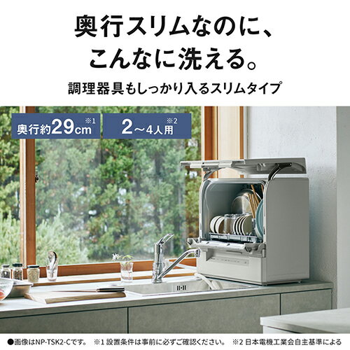 商品の在庫状況は下表の「商品のみ」のページへ移動してご確認ください。長期保証をご希望のお客様は下記の表より「設置申込+長期保証」のページへ移動してご注文ください。※設置作業につきましては下記の「家電設置サービス」バナーより必ず内容をご確認ください。※代金引換およびお届け時間帯指定がご利用頂けません。予めご了承下さい。※配送・設置のサービス対応エリアは限られております。一部地域、離島・山間部等、サービス対応エリア外への設置注文は承ることができません。 【食器洗い機 ご購入前のチェックポイント】食器洗い機は分岐水栓が付属しておりません。取付にはお客様の設置環境に適した分岐水栓(別売)が必要となります。【設置工事のをご希望の場合(ご注意)】設置に必要な分岐水栓は種類が多様になります為、事前のお見積もりが必要です。対応の分岐水栓と代金はお見積もり後のご案内となります。(分岐水栓の代金は設置の際に現地にて集金させて頂きます。)設置はお見積もりと分岐水栓取り寄せ後の設置伺いの2回訪問となります。※分岐水栓の対応はメーカーページにてご確認頂けます。 パナソニックホームページより「分岐水栓ガイド」で検索、 ご家庭の蛇口の品番から対応する分岐水栓をご確認頂けます。■本体奥行約29cm、リフトアップオープンドア採用のスリムタイプ■シンク横にもスッキリ収まり、調理スペースが確保できる■ドアが上に開く「リフトアップオープンドア」採用で、水栓・蛇口に当たりにくい設計ですNPTSK2Cタイプ:卓上型食器点数:24点食器容量:2人分運転時間 50Hz:93分 60Hz:88分標準使用水量:8L乾燥機能:○運転音 50Hz:39dB 60Hz:41dB消費電力 50Hz モーター:68W ヒーター:1100W 60Hz モーター:88 ヒーター:1100ホースの長さ 給水:1.2m 排水:1m庫内容量:36Lコード長:1.9m寸法:幅 550×高さ 500×奥行 290mm質量:約16kg付属品: 給水ホース(1本・約1.2m) 排水ホース(1本・約1m) ホースバンド(1個・排水ホース用) お試し用食洗機専用洗剤(サンプル品) 吸盤(1個),背面カバー(1個) 小物入れ設置場所であきらめない
