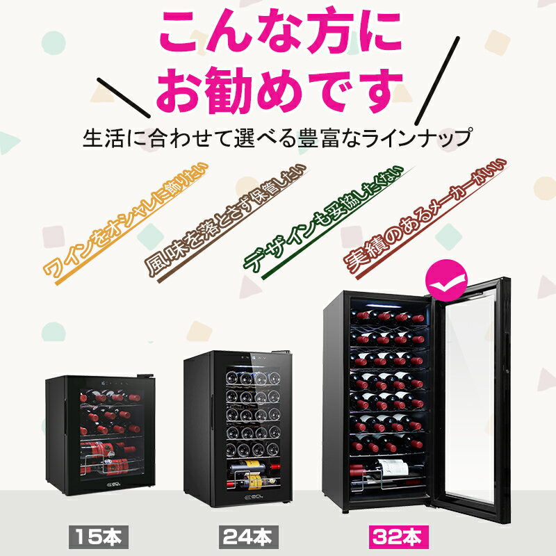 【レビュー特典付き】ワインセラー 15本 24本 32本 家庭用 業務用 小型 ワインクーラー ワイン冷蔵庫 5℃-18℃温度設定 42L 63.2L 80L 省エネ 三層ガラス