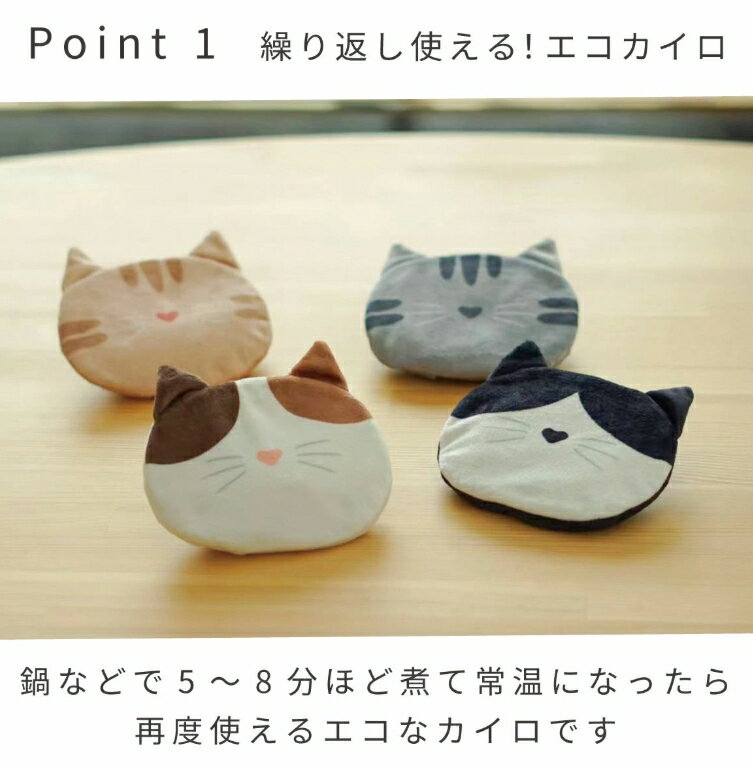 『NECO ネコ カイロ 2 』【猫グッズ ねこ ミケ ハチワレ サバトラ 茶トラ 繰り返し使える カイロ カバー付 貼らない 手のひらサイズ エコカイロ 温かい 外出 カイロカバー 冷え対策 保温グッズ 何度も使える】