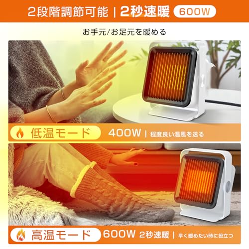 ブラック/-/H5・Color:ブラック・パッケージ個数:1・【省エネヒーター】節電型の小型セラミックヒーターで、最大消費電力はわずか600W、電気代目安(1時間あたり)(50/60Hz):16.2円(1kWh当り27円として計算)。体の部分的な暖房や小さな部屋での使用に最適、一人暮らしの方にぴったりです。・【2段階出力・2秒速暖】本セラミックファンヒーターは弱温風(400W)、強温風(600W)二つのモードが切り替え可能、温度や環境に応じた最適な暖房を提供します。強温風(600W)で約2秒速暖可能、早く暖めたい時に役立つ。・【安心・安全電気ヒーター】電気ヒーターが転倒自動オフ機能を搭載して、作動中に地震や衝突などで倒れても、すぐに電源がオフになるのでとっても安心です。なお、過熱保護機能を備えて、V0級難燃安全素材を採用して,三重の保護で安心感たっぷり。・【持ち運び便利・省スペース】小型ヒーター、重さはわずか0.85kg。取っ手を持って、手軽な持ち運ひで使用したい場所に簡単に持っていけます。本体サイズ:約15.3x10x19.3cm/ 場所を取らないスリムなボデ