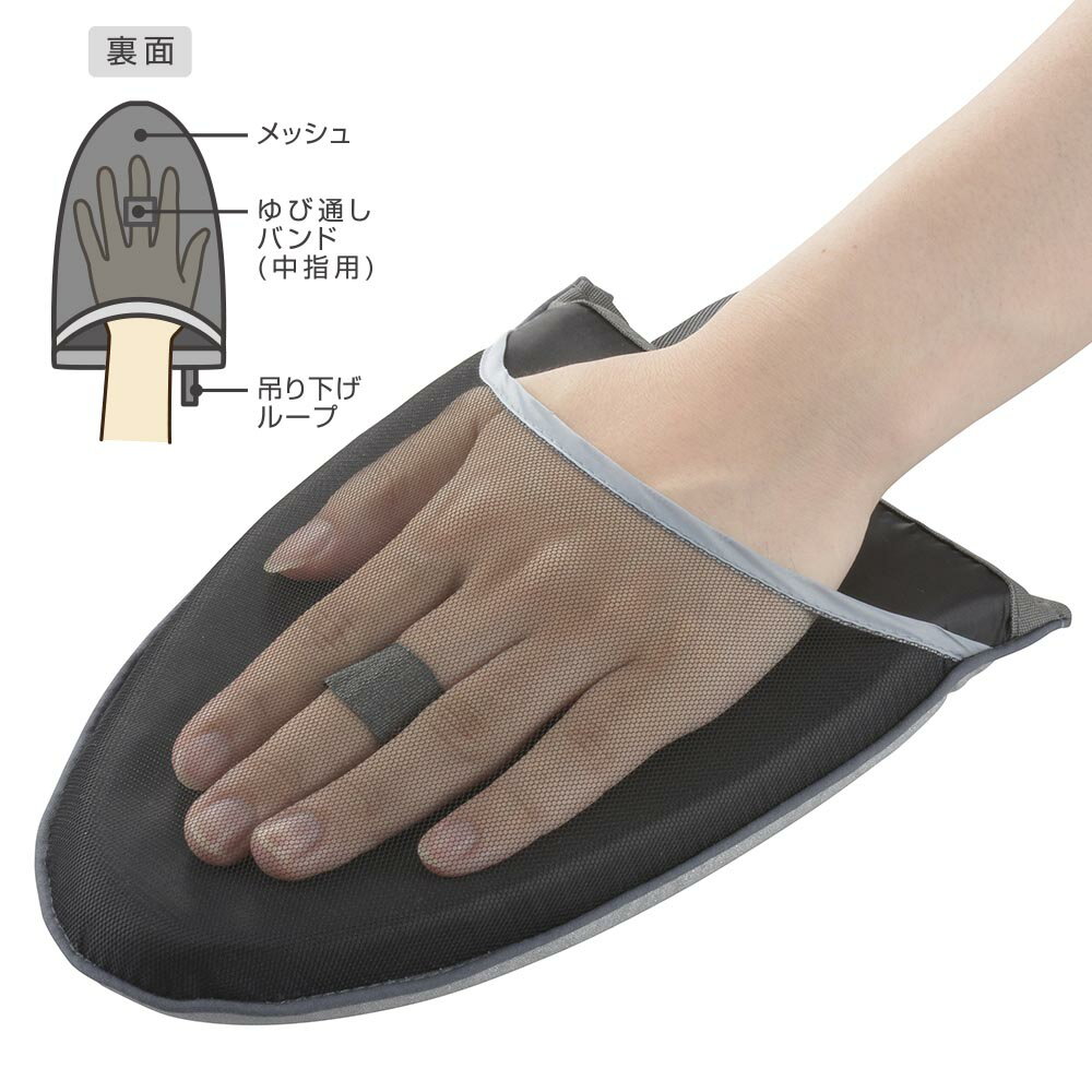 特長 ●衣類をハンガーに掛けたままで、アイロンがけができます●肩や襟まわり、そで口などの立体部分や、細かい部分のアイロンがけに便利です●スチームアイロンに対応しています●表面は熱効率の良い、アルミコーティング加工の生地を使用しています●裏面は手にはめたときに蒸れにくく、通気性がよいメッシュ生地を使用しています●収納に便利な吊り下げループ付きです 商品仕様 ●素材:表面…綿(アルミコーティング)、中心…ポリウレタン、裏面(メッシュを含む)…ポリエステル●表面耐熱温度:約200℃●本体寸法:(約)幅165×高さ250×奥行28mm ※吊り下げループ含まず●質量:約33gメーカー取寄品