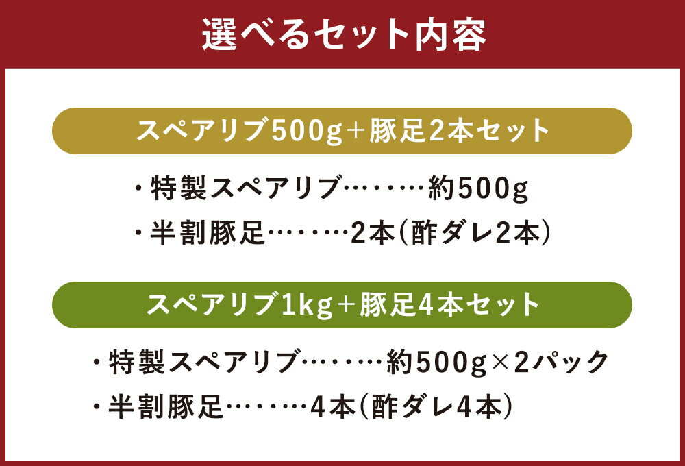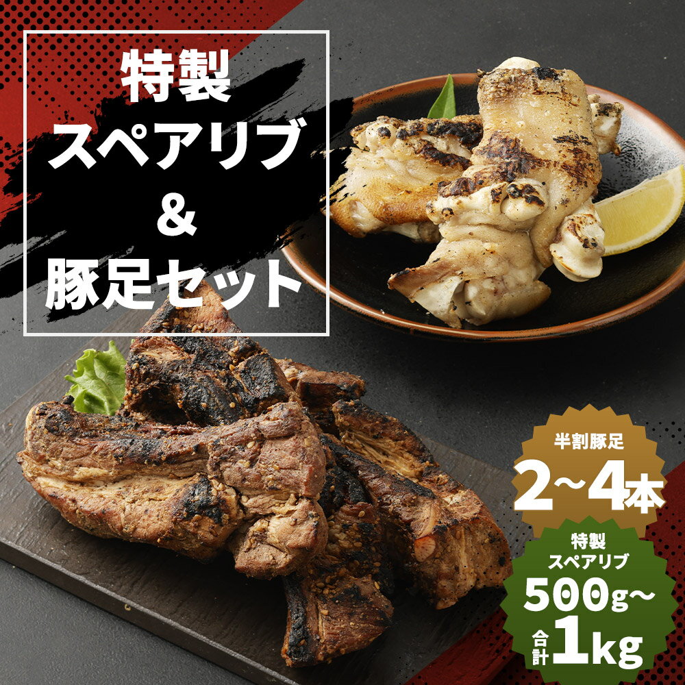 【ふるさと納税】特製スペアリブ&豚足セット スペアリブ約500g+豚足2本/スペアリブ約1kg+豚足4本 選べる内容量 半割豚足 惣菜 おかず おつまみ お肉 スペアリブ 豚足 冷凍 送料無料