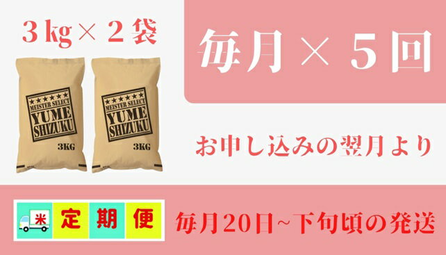 名称 【ふるさと納税】『新米予約初回2025年10月発送』【5回定期便】『夢しずく』白米3kg×2袋 【五つ星お米マイスター厳選!】 内容量 『新米予約初回2025年10月発送』【5回定期便】『夢しずく』白米3kg×2袋 賞味期限 (発送日)より30日 ※保管の際は高温・多湿を避け冷蔵庫の野菜室などに保管してください。 配送方法 お申込み翌月より毎月発送致します。(初回2025年10月発送) 販売者 大塚米穀店(みやき町) 注意事項 ・ふるさと納税よくある質問はこちら ・寄附申込みのキャンセル、返礼品の変更・返品はできません。あらかじめご了承ください。佐賀県限定品種!『夢しずく』!! 佐賀県を代表するブランド米『さがびより』にも負けず劣らず 人気のお米です!! 少し柔らかめな食感で炊き上がりの香り、ツヤが良く 噛むほどに甘みと旨みが口いっぱいに広がります! 提携農家さんが真心こめて作られた【夢しずく】の中から 佐賀県唯一の(令和4年5月現在)五つ星お米マイスターである 地元みやき町にある米穀店の三代目店主が 食味や夢しずくの栽培に適した産地を吟味。 厳選された玄米を発送当日に自社精米工場にて精米。 精米したての美味しさを毎月お届けいたします! ご注文の翌月より毎月20日〜下旬頃の発送予定です! (10月頃から2月頃はお申込みが殺到いたします。発送目安より遅れる場合もございます。) ※パッケージ(米袋)デザインも大塚米穀店オリジナル♪ (使い勝手を考えて、新たに3kgパッケージが誕生しました!) キッチンに出していてもお洒落で毎日の家事が楽しくなるようにとの 思いを込めて、味はもちろんのことデザインにもこだわりました! 【賞味期限】発送日(精米日)より30日 ※保管の際は高温・多湿を避け冷蔵庫の野菜室などに保管してください。 【内容量】『新米予約初回2025年10月発送』【5回定期便】『夢しずく』白米3kg×2袋 【発送】お申込み翌月より毎月発送致します。(初回2025年10月発送) 【提供元】大塚米穀店 ■ご寄附後のキャンセル及び、ご不在や住所不備等による返礼品の再送は致しかねます■ 【地場産品基準のうち該当する類型:告示第5条第4号】 上記類型に該当する理由区域内で生産後、近隣の団体で生産されたものと流通構造上、混在することが避けられないため(鳥栖市,吉野ヶ里町,上峰町)