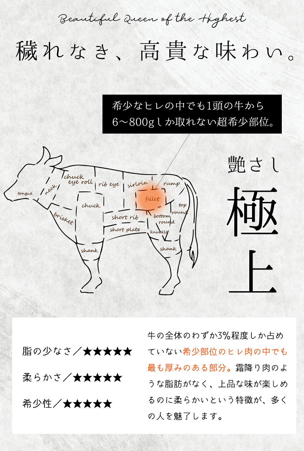 産地名 国産(佐賀県) 内容量 200g 3枚 保存方法 到着後は必ず冷凍庫で保管してください。 商品説明 幻の部位!ヒレの中のヒレ! 美食家が牛肉を語る上で、絶対に欠かせないのが、俗にヒレ(フィレ)と呼ばれている部位のお肉の部分の、最も中心の部分。 牛1頭から約600g程度しか取れないとても希少性の高い部位で、流通する大部分が高級レストランや料理店に納められており、私たちが市場で見かけることはほぼないようです。 また、お目にかかったとしてもかなりの高価な値が付けられています。それゆえに幻の部位とまで言われているのです。 また、ただ単に希少価値が高いというだけではなく、牛の肉の部位の中では最も美味であると言われており、まさに牛肉の最高級の部位といっても過言ではないといえます。 肉質の良いヒレ肉の、さらに中心部分の柔らかい部分だけを取るわけですから、それは希少部位になるはずですよね♪ 佐賀牛の最高級ヒレ肉を召し上がっていただきたいのですが、供給量が限られているそんな希少部位なので皆様のご要望にお応えすることができないことがとても残念です。 ヒレの美味しい食べ方と焼き方 ヒレを美味しく食べるならやっぱりステーキが一番です! 柔らかな肉質のヒレは、さっと火を通してレアでいただくのが最高の味わい方なのですがレアが苦手だという方はお好みまで火を通されても結構でしょう。 まずは冷蔵庫から出して、30分~1時間程度おいて常温に戻しておきます。 常温にする理由は、熱の伝導率が上がって肉が美しく焼き上がるからで、肉を焼く場合にはいつも実践することがおすすめです。 フライパンに牛脂またはサラダ油を引き、十分に熱したらヒレ肉を投入して火を中火か弱火にして片面をしっかりと焼きます。 片面を焼き上げたら裏返してもう片面も焼き上げて終了!! もしお肉が厚くて火のとおり具合が心配だというときは、片面を焼き上げたあとに一旦フライパンからお肉を取り出して、アルミホイルで包んで予熱で火を通すといいでしょう。 味付けはステーキソースは使わずに、まずは塩とコショーでシンプルに召し上がってみてください。(ただし、肉に塩と胡椒を振るのは焼く直前にすること!!) サーロインが好きと言われる方も、このヒレの肉質の柔らかさと肉の甘み・旨味を一度味わってしまうと、きっとヒレの虜になってしまうはずです♪ ◎季節の贈り物 御正月 お正月 御年賀 お年賀 御年始 母の日 父の日 初盆 お盆 御中元 お中元 お彼岸 残暑御見舞 残暑見舞い 敬老の日 寒中お見舞 クリスマス クリスマスイブ クリスマスプレゼント お歳暮 御歳暮 ◎日常の贈り物 御見舞 退院祝い 全快祝い 快気祝い 快気内祝い 御挨拶 ごあいさつ 引越しご挨拶 引っ越し お宮参り御祝 志 進物 ◎長寿の贈り物 61歳 還暦(かんれき) 還暦御祝い 還暦祝 祝還暦 華甲(かこう) 70歳 古希(こき) 祝古希 古希御祝 77歳 喜寿(きじゅ) 祝喜寿 喜寿御祝 80歳 傘寿(さんじゅ) 傘寿御祝 祝傘寿 88歳 米寿(べいじゅ) 祝米寿 米寿御祝 90歳 卒寿(そつじゅ) 祝卒寿 卒寿御祝 99歳 白寿(はくじゅ) 白寿御祝 百寿御祝 祝白寿 100歳 百寿(ひゃくじゅ・ももじゅ) 祝百寿 紀寿(きじゅ) 108歳 茶寿(ちゃじゅ) 祝茶寿 茶寿御祝 不枠(ふわく) 111歳 皇寿(こうじゅ) 川寿(せんじゅ) 120歳 大還暦(だいかんれき) 昔寿(せきじゅ) 賀寿 寿 寿福 祝御長寿 ◎祝事の贈り物 合格祝い 進学内祝い 成人式 御成人御祝 卒業記念品 卒業祝い 御卒業御祝 入学祝い 入学内祝い 小学校 中学校 高校 大学 就職祝い 社会人 幼稚園 入園内祝い 御入園御祝 お祝い 御祝い 内祝い 金婚式御祝 銀婚式御祝 御結婚お祝い ご結婚御祝い 御結婚御祝 結婚祝い 結婚内祝い 結婚式 引き出物 引出物 引き菓子 御出産御祝 ご出産御祝い 出産御祝 出産祝い 出産内祝い 御新築祝 新築御祝 新築内祝い 祝御新築 祝御誕生日 バースデー バースディ バースディー 七五三御祝 753 初節句御祝 節句 昇進祝い 昇格祝い 就任 ◎弔事の贈り物 御供 お供え物 粗供養 御仏前 御佛前 御霊前 香典返し 法要 仏事 法事 法事引き出物 法事引出物 年回忌法要 一周忌 三回忌、 七回忌、 十三回忌、 十七回忌、 二十三回忌、 二十七回忌 御膳料 御布施 ◎法人向けの贈り物 御開店祝 開店御祝い 開店お祝い 開店祝い 御開業祝 周年記念 来客 お茶請け 御茶請け 異動 転勤 定年退職 退職 挨拶回り 転職 お餞別 贈答品 粗品 粗菓 おもたせ 手土産 心ばかり 寸志 新歓 歓迎 送迎 新年会 忘年会 二次会 記念品 景品 開院祝い ◎ギフト お土産 ゴールデンウィーク GW 帰省土産 バレンタインデー バレンタインデイ ホワイトデー ホワイトデイ お花見 ひな祭り 端午の節句 こどもの日 ギフト プレゼント ◎お返し 御礼 お礼 謝礼 御返し お返し お祝い返し 御見舞御礼 結婚内祝い ◎おすすめです 個包装 上品 上質 高級 お取り寄せ おしゃれ 可愛い かわいい おいしい 食べ物 お取り寄せ 人気 食品 老舗 おすすめ ◎こんな想い ありがとう ごめんね おめでとう ごめん ありがとうござ