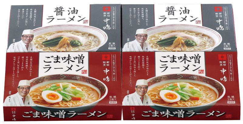 【送料無料】「新宿割烹中嶋」ラーメンセット 8食入り,醤油ラーメン,ごま味噌ラーメン,常温保存,お歳暮,御歳暮,贈り物,プレゼント,名店監修ギフト
