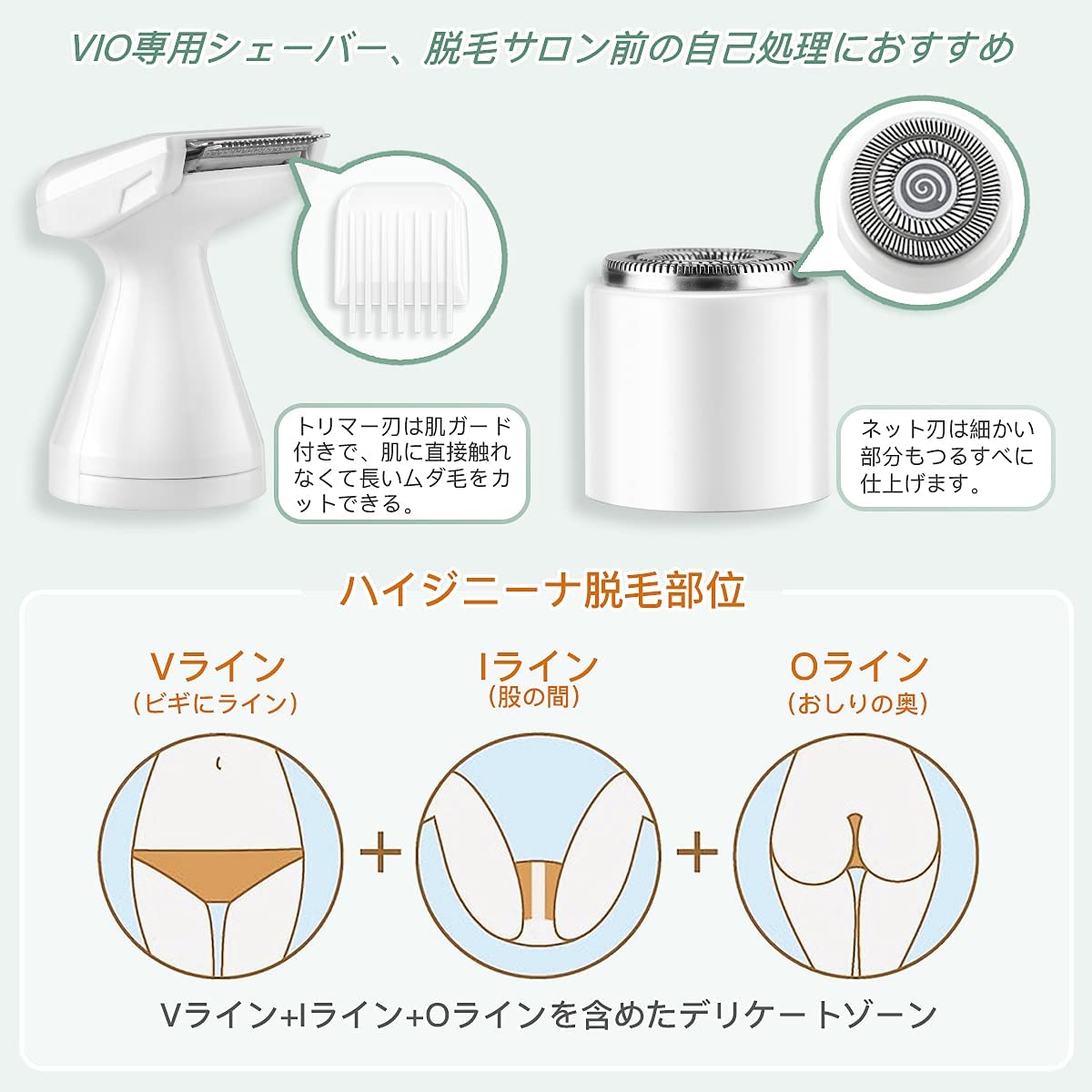 商品説明文 【5in1レディースシェーバー】 ボディーシェーバー、VIO専用シェーバー、フェイスシェーバー、眉毛カッター、鼻毛カッター5つの機能がある充電式の女性用シェーバーです。 顔、産毛、眉毛、脇、腕、足、下の毛、鼻毛、耳毛等全身用電気シェイバーで、ムダ毛の悩みから解放させるおすすめの好物です。 【VIO専用シェーバー】 全身用シェーバーと分けて、VIO専用シェーバーも用意しており、もっと衛生的です。 最適な専用刃で、VIO特有の太くて長い毛もしっかりキャッチ、チクチク剃り残しなくカットできます。 シェーバー刃とスキンガードを組み合わせて、様々なアンダーヘアの形を好みにシェービングできる。 【USB充電式&&ヘッド洗い可能】 便利なUSB充電式電動シェーバーで、国内も海外も使用可能で使用時間がもっと長くなり、省エネになりました。 ヘッド部分は取り外しがやすいし、使用後、水洗い可能です。 なお、付属の清掃用ブラシを使って、内側のムダ毛を掃き出して下さい。 【お肌に優しい】 内刃は高精度のステンレス鋼を採用され、肌に直接触れることが少ないの回転式内刃を採用し、肌の凹凸に合わせて、顔やボディ各処のムダ毛をしっかりと取り込め、スキンガード付きで肌を傷めずに、やさしく深剃りが可能です。 注意事項 ご注文確定後、順次発送させて頂きます。 (土日祝除く、配送状況により遅延する場合が御座います) ※他店舗でも併売しておりますので入れ違いに完売の際にはご容赦下さい。 ※ご注文頂きました後迅速に出荷準備に入らせて頂く為、ご注文頂きました後のキャンセルはお断りさせて頂いております。商品説明文 【5in1レディースシェーバー】 ボディーシェーバー、VIO専用シェーバー、フェイスシェーバー、眉毛カッター、鼻毛カッター5つの機能がある充電式の女性用シェーバーです。 顔、産毛、眉毛、脇、腕、足、下の毛、鼻毛、耳毛等全身用電気シェイバーで、ムダ毛の悩みから解放させるおすすめの好物です。 【VIO専用シェーバー】 全身用シェーバーと分けて、VIO専用シェーバーも用意しており、もっと衛生的です。 最適な専用刃で、VIO特有の太くて長い毛もしっかりキャッチ、チクチク剃り残しなくカットできます。 シェーバー刃とスキンガードを組み合わせて、様々なアンダーヘアの形を好みにシェービングできる。 【USB充電式&&ヘッド洗い可能】 便利なUSB充電式電動シェーバーで、国内も海外も使用可能で使用時間がもっと長くなり、省エネになりました。 ヘッド部分は取り外しがやすいし、使用後、水洗い可能です。 なお、付属の清掃用ブラシを使って、内側のムダ毛を掃き出して下さい。 【お肌に優しい】 内刃は高精度のステンレス鋼を採用され、肌に直接触れることが少ないの回転式内刃を採用し、肌の凹凸に合わせて、顔やボディ各処のムダ毛をしっかりと取り込め、スキンガード付きで肌を傷めずに、やさしく深剃りが可能です。 注意事項 ご注文確定後、順次発送させて頂きます。 (土日祝除く、配送状況により遅延する場合が御座います) ※他店舗でも併売しておりますので入れ違いに完売の際にはご容赦下さい。 ※ご注文頂きました後迅速に出荷準備に入らせて頂く為、ご注文頂きました後のキャンセルはお断りさせて頂いております。
