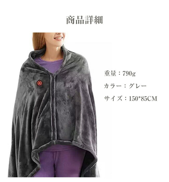 【商品名】 ★電気毛布 電気敷き毛布★ 【商品情報】 ・カラー:グレー ・サイズ:150*85CM ・素材:ポリエステル 【商品説明】 ・大判サイズ・電気毛布 ・3段階温度調整 ・8枚のヒーター搭載で、寒い季節でも全身ぽかぽか ・保温性は抜群:起毛素材で、柔らかく暖かい着心地 ・便利なUSB給電式 ・ファスナー設計 ・様々なシーンに適用! ・丸洗い可能・清潔保持 ★モデルに使用している小物、アクセサリ等はセット内容に含まれません。 ★平置き実寸にて測っております。採寸方法により若干の誤差が生じる場合がございます。 ★モニターの発色具合によって実際のものと色が異なる場合があります。 何卒、ご理解くださいますよう、お願い申し上げます。