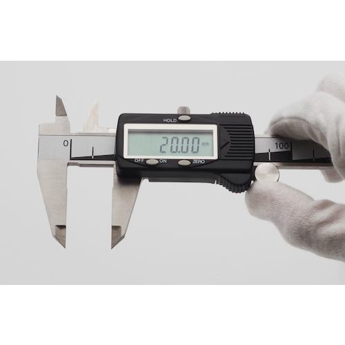 《メーカー》トラスコ中山(株)《品番》TDN-100《特長》●測定値が読み取りやすいデジタル表示で、読み間違いを防ぎます。●表示している数値を固定できるホールド機能付です。表示画面が見えない場所の測定に便利です。●微動送りが可能なサムローラ付きです。●ゼロリセット機能付きで、比較測定が可能です。●オートオフ機能付きで、電池の消耗を防ぎます。●静止状態で約20分でOFFになります。《用途》●外側測定、内側測定、段差測定、深さ測定に。●家庭、学校、研究所、工場など、あらゆる精密測定に。《仕様》●測定範囲(mm):0〜100●最小表示(mm):0.01●最大許容誤差(mm):±0.03●外側用ジョウ(mm):40●内側用ジョウ(mm):16.5●デプスバー:有●電源:ボタン型酸化銀電池(SR44)×1個(別売)《仕様2》●オートOFF機能付き《原産国(名称)》中国《材質/仕上》●本尺:ステンレス●液晶ユニット:ABS《セット内容/付属品》●プラスチックハードケース《注意》●防水・防じん機能はありません。●電池を入れて蓋をする際は電池を押しながら蓋を溝にはめ込む様にお願いします。●提供不可:chemSHERPA、SDS、ミルシート《JANコード》4989999353853《本体質量》150.0gTRUSCO デジタルノギス 100mm〔品番:TDN-100〕[注番:4890744][本体質量:150.0g]《包装時基本サイズ:249.00×90.00×29.00》〔包装時質量:310.0g〕分類》測定・計測用品》測定工具》ノギス☆納期情報:取寄管理コード(006) メーカー直送品 (欠品の場合有り)