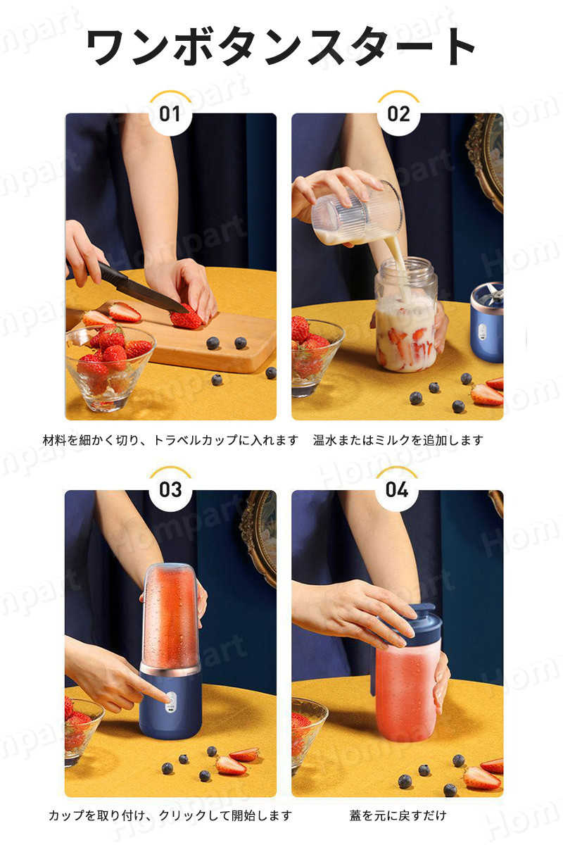お買い物マラソン【P5倍】ミキサー ジューサー ジューサーミキサー 氷も砕ける ブレンダー スムージー フードプロセッサー 小型 野菜&果物&離乳食用 洗いやすい USB充電式 400ml 携帯ジューサー コンパクト 持ち運び 操作簡単