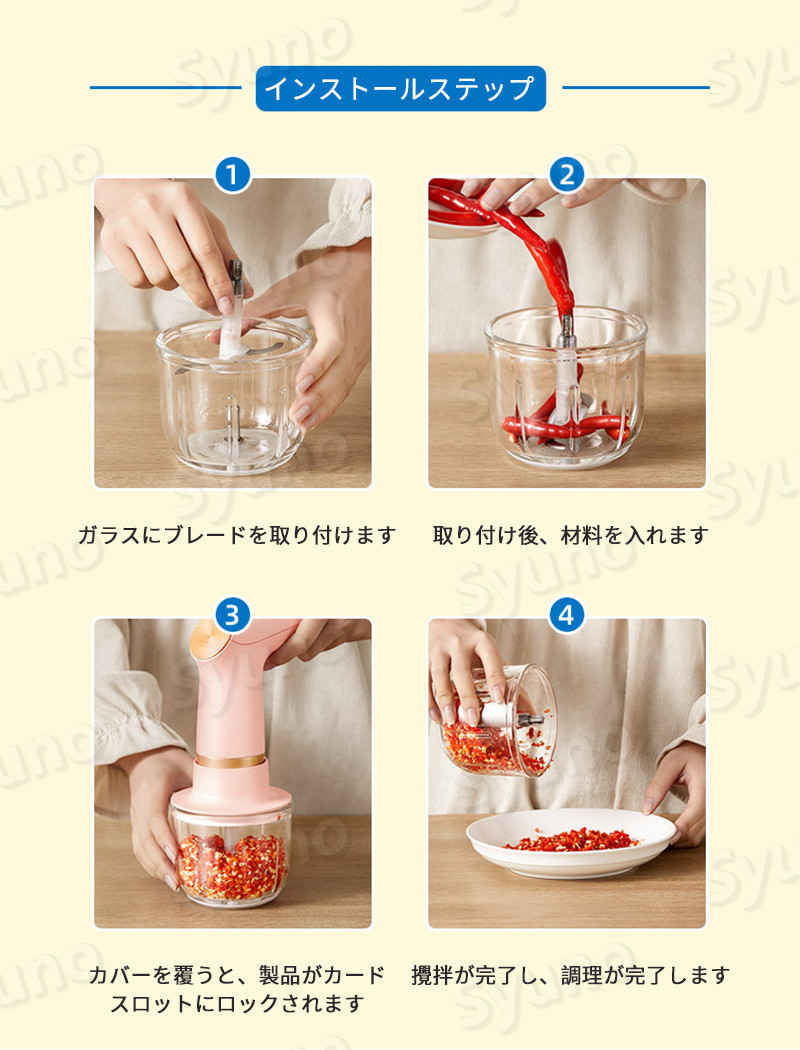 製品パラメータ 商品名:小型多機能クッキングスティック 商品色:ブルー 製品容量:300ml(ガラス) 定格電力:30w 電池容量:2000mah 製品素材:ブレード304ステンレス鋼 製品正味重量:0.68kg 製品サイズ:100 * 100 * 100mm(手動測定誤差)50mm(ハンドル径) 仕様:エッグビーター* 1、エッグビーター* 1、ミルクビーター* 1、ミートグラインダーカップ* 1、充電ケーブル* 1 原産国:中国