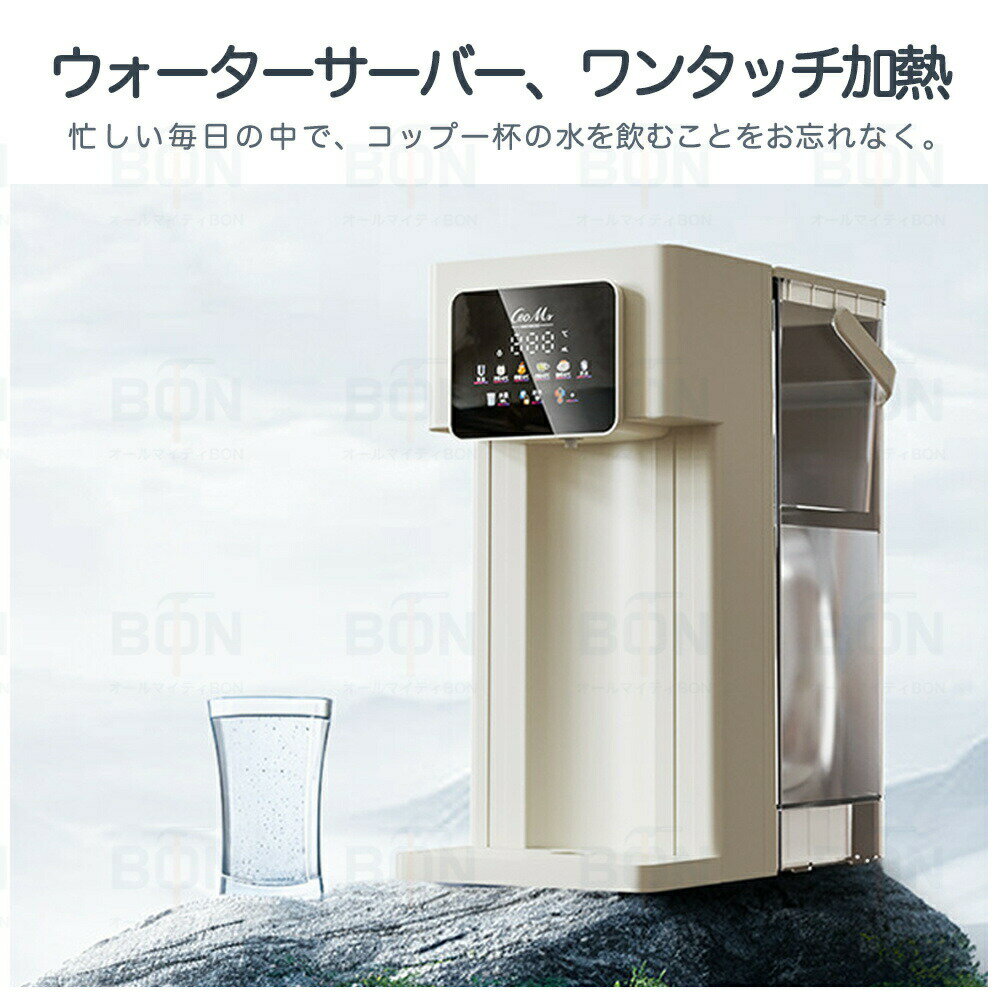 ウォーターサーバー 水道水 卓上 浄水型 ペットボトル 急速湯沸器 水道直結 小型 電気ポット カートリッジ 一体型 水温調節 コンパクト ボトル ロック付き サーバー 給水 温水 冷水 整水器 温水器 浄水ポット カートリッジ 母の日 引っ越し祝いウォーターサーバー 水道水 卓上 浄水型 ペットボトル 急速湯沸器 水道直結 浄水器 小型 カートリッジ 一体型 水温調節 浄水 ろ過 コンパクト ボトル ロック付き商品名ウ:ォーターサーパー商品番号:ggj166カラー:ホワイト商品寸法:140*230*285(mm)商品重さ:2kg定格入力:100~110V定格出力:2000WPSE認証:認証濟【12種類の温度が選べる、家族みんなの飲料水趣味に最適】 湿水と冷水だけでは物足りない!12段階の温度制御で家族全員のニーズに応えま【定量水採取】 3段階の定量水採取、水を監視する必要はありません。 200ml, 350ml, 500mlは途中でボタンを押すと止水できます。自由な定義は水を無駄にしません。【ブラックテクノロジーレアアース厚膜加熱】 プラックテクノロジーレアアース厚膜加熱を使用し、水流が360°の渦を通過し、三次元的に上同きに加熱されるため、水の一滴一滴が均一に加熱され、数秒でお湯が生成されます。省スペース設計 ウォーターディスペンサーは通常、コンパクトでスペース効率に優れています。この省スペースの側面は、スペースに余裕がなく、リビングエリアや作業エリアを乱雑にしない,電製品が必要な場合に特に役立ちます。【安全チャイルドロック火傷防止】 安全チャイルドロック機能は特別に設計されており、調操作を防ぎ、安全にロックでき、安心して水を飲むことができます。*注意事項*1. 20分間水に浸し、一度振って粒子が出るかどうかを確認します。2. その後、最初の3カップの濾過水は飲むことができず、ただ注ぎ出すだけです。3. 最初の 2 つの手順を完了すると、フィルターを使用できるようになります。4. 他社のフィルターとの互換性は非常用に設計されて、他社のフィルターを主力フィルターとしては使用しないでください。予備フィルターがご希望の場合は弊社よりご購入ください。https://item.rakuten.co.jp/albon/ggj175/フィルターについて、3ヶ月に一回交換するのをお勧めでございます。交換の頻度は当地の水質により、異なりますのでご了承ください。5商品情報【12種類の温度が選べる、家族みんなの飲料水趣味に最適】湿水と冷水だけでは物足りない!12段階の温度制御で家族全員のニーズに応えま【定量水採取】3段階の定量水採取、水を監視する必要はありません。200ml, 350ml, 500mlは途中でボタンを押すと止水できます。自由な定義は水を無駄にしません。【ブラックテクノロジーレアアース厚膜加熱】プラックテクノロジーレアアース厚膜加熱を使用し、水流が360°の渦を通過し、三次元的に上同きに加熱されるため、水の一滴一滴が均一に加熱され、数秒でお湯が生成されます。省スペース設計ウォーターディスペンサーは通常、コンパクトでスペース効率に優れています。この省スペースの側面は、スペースに余裕がなく、リビングエリアや作業エリアを乱雑にしない,電製品が必要な場合に特に役立ちます。【安全チャイルドロック火傷防止】安全チャイルドロック機能は特別に設計されており、調操作を防ぎ、安全にロックでき、安心して水を飲むことができます。安全儿童?、防??安全儿童?功能特???,防止??操作,安全?定可以安心喝水。【FAQ:】Q:この給水器が自宅で使えるか心配なので、簡易的にメリットを示してください。A:プラックテクノロジーレアアース厚膜加熱を使用し、水流が360°の渦を通過し、三次元的に上同きに加熱されるため、水の一滴一滴が均一に加熱され、数秒でお湯が生成されます。多様なシーンで活躍します。また、コンパクトサイズのため設置場所を選ばず、お部屋のインテリアにもマッチしやすいデザインです。さらに、温度調整機能やチャイルドロック機能など、安心安全で便利な機能が搭載されています。Q:なぜ今、水素水なのですか。A:水素水は、有名タレントやモデル、一流アスリートたちが美容や疲労回復のために愛飲したことをきっかけにブームが起こりました。最近では、大学病院の教授や医療に携わる研究者の間でも注目されるようになり、医療の現場において本格的な導入が期待されています。Q:水素水が注目される理由は何ですか?A:人間が生きていく上で必ず発生する活性酸素には、善玉活性酸素と悪玉活性酸素があります。善玉はウイルスや細菌を死滅させる等の良い作用があるが、悪玉は肌細胞を破壊したり老化を早めたりと様々な悪影響を及ぼします。水素水はこの悪玉活性酸素を排除する働きがあることが分かってきたため、各界から大きく注目されているのです。Q:機械音痴でも簡単に設定できますか。A:できます。商品を箱から取出し、タンクに水を入れ、電源を入れるだけですぐにご使用いただけます。Q:水道水の中に含まれる塩素はろ過されますか。A:プラックテクノロジーレアアー