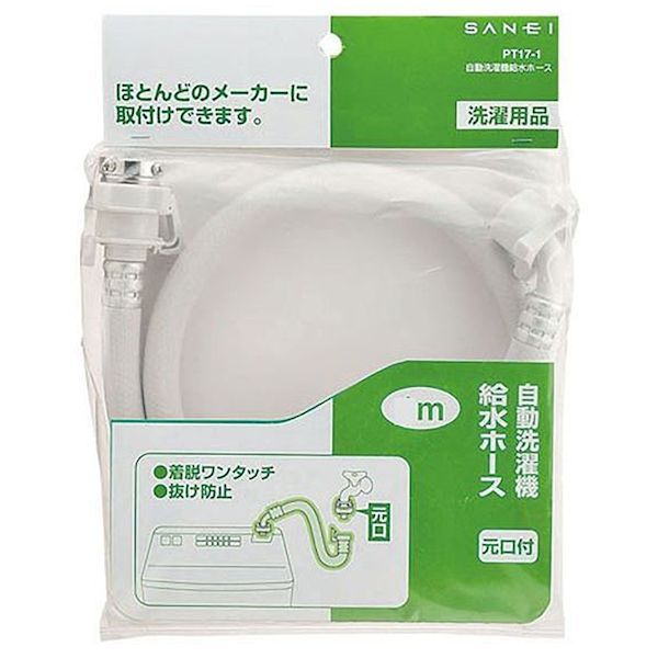 【即納在庫品】「直送」三栄水栓 SANEI PT17-1-1.5 自動洗濯機給水ホース 1.5m 家電 > 生活家電 > 生活家電用アクセサリー・部品 > 洗濯機・洗濯乾燥機用アクセサリー > 給水ホース ショップ名 レビュー数 iDECA 楽天市場店 0件 三栄水栓 SANEI PT17-1-1.5 自動洗濯機給水ホース 1.5m PT1711.5 1,655円(税込) ツイート 【商品説明】●全自動洗濯機の給水用ホースホースと蛇口をワンタッチでつなぐ元口つき●給水ホース:1.5m●材質:塩化ビニル樹脂、ポリアセタール ■カテゴリ 家電 > 生活家電 > 生活家電用アクセサリー・部品 > 洗濯機・洗濯乾燥機用アクセサリー > 給水ホース