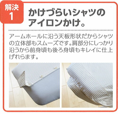 アイロン掛けのお悩みを解決!アイロン掛けのお悩みを解決してくれる、うれしい機能がいっぱい!スタンド式アイロン台。解決1 かけづらいシャツのアイロンかけアームホールに沿う形状だから、シャツの立体部もスムーズ。 肩部分にしっかり沿うから、前身頃も後ろ身頃もきれいに仕上がります。解決2 かけづらいボトムのアイロンかけ股上に沿うボトムカーブでスラックスの股上の立体部もシワなくすっきり仕上げられます。解決3 アイロン置き台で置き場所を解決アイロンがけで使うスプレー等の小物を引っ掛けて収納できます。 コードレスアイロンもしっかり置ける、便利な回転式の置台です。解決4 かけづらいボタンにボタンプレス機能凹凸吸収構造になっているので、ボタンが中に沈み、裏からアイロンを掛けてもシワができません。その他の機能ワンタッチレバーで15段階の高さ調節が可能。 立って、イスに座って、正座してと、楽な姿勢がとれるので、長時間の作業も疲れにくい親切設計。スチールメッシュ構造だから、丈夫で長持ち。 スチームの通りがよく、パリッとキレイに仕上がります。表面はアルミコート。 焦げにくく、高い熱伝導率で、すばやいアイロン仕上げが可能です。重くて敬遠されるスタンドタイプを約3.5kgまで軽量化。 女性でも出し入れ・持ち運びがラクラク。使用時サイズ(約)幅85×奥行37×高さ24〜78cm収納時サイズ(約)幅110×奥行37×高さ7cm重量(約)3.5kg材質表面布/綿100%(アルミコーティング) クッション材/ポリエステル 天板、置台/スチール(粉体塗装) 脚部/アルミニウム品番7611製造国中国製造メーカー山崎実業