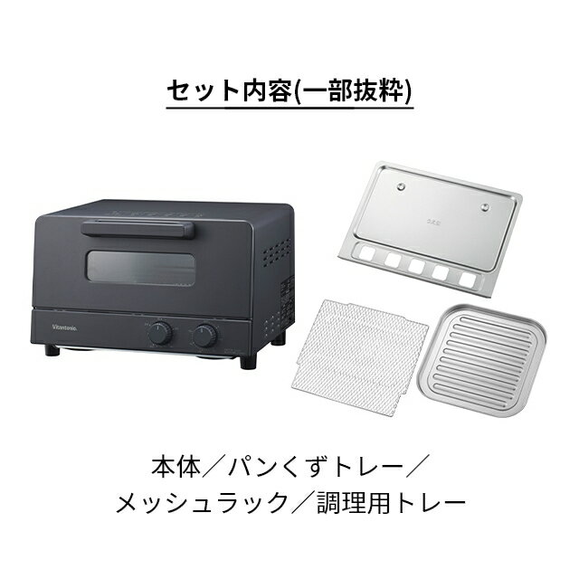 Vitantonio (ビタントニオ) オーブントースター VOT-50 ビタントニオ トースター オーブントースター VOT-50 オーブントースター オーブン 4枚 温度調節機能 4枚焼き おしゃれ トレー コンパクト 焼き芋 パン クッキー 餅 掃除 揚げ物 温め お菓子 温度調節 チーズケーキ さつまいも サーモスタット 食パン 1200w Vitantonio コンパクトながらトーストが一度に4枚焼ける「Vitantonio オーブントースター」。大容量で忙しい朝も家族で使いやすく、23cmの冷凍ピザも丸ごと焼けます。機能は温度調節とタイマーのみ。シンプルだからこそ、焼き芋やローストチキン、スイーツなど幅広く対応します。高級感のあるマットなシックデザイン。機能・デザインで「ちょうどいいこだわり」がつまったトースターです。 INFORMATION コンパクトながらトーストが一度に4枚焼ける大容量。機能は温度調節とタイマーのみ。シンプルだからこそ、焼き芋やローストチキン、スイーツなど幅広く対応します。 KEYWORD トースター オーブントースター オーブン 4枚 温度調節機能 4枚焼き おしゃれ トレー コンパクト 焼き芋 パン クッキー 餅 掃除 揚げ物 温め お菓子 温度調節 チーズケーキ さつまいも サーモスタット 食パン 1200w 家電 ギフト プレゼント 母の日 父の日 クリスマス クリスマスプレゼント お返し 結婚祝い 新築祝い 引越し祝い 黒 ブラック ビタントニオ オーブントースター Vitantonio VOT-50★ ご注意 ★商品のお届けに関する重要なお知らせ簡単レシピ・ライフハック などをブログでご紹介!AQUA RECORD Vitantonio (ビタントニオ) オーブントースター VOT-50シンプルだから何でも作れる 4枚焼きトースターコンパクトながらトーストが一度に4枚焼ける「Vitantonio オーブントースター」。大容量で忙しい朝も家族で使いやすく、23cmの冷凍ピザも丸ごと焼けます。機能は温度調節とタイマーのみ。シンプルだからこそ、焼き芋やローストチキン、スイーツなど幅広く対応します。高級感のあるマットなシックデザイン。機能・デザインで「ちょうどいいこだわり」がつまったトースターです。●食パンを一度に4枚焼ける家族みんなで使いやすい大容量。23cmの冷凍ピザならまるごと焼けて、グラタンなら2皿入ります。●80〜250℃の無段階調整シンプルなダイヤル操作で、80℃〜250℃まで、温度を無段階調整できます。加熱と余熱で低温調理や、温度帯が繊細なお菓子作りもできちゃいます。●30分ロングタイマー30分のタイマー付きで、時間を掛けてじっくり作りたい焼き芋も作れます。●グリルに便利な波型トレー付揚げ物の温め直しやお肉調理にうれしいトレーが付属。余分な油が周りに流れやすい波型。こぼれにくいよう、深さがあります。●機能的でシックなデザイン全体がブラックで統一されたシックなデザイン。レシピは天面に記載があるので目立ちにくいのに確認しやすいのが嬉しいポイントです。 商品仕様●電源AC100V 50Hz/60Hz●消費電力1200W●外形寸法W344×D326×H220mm●庫内有効寸法W284×D274×H88mm●商品重量約3.5kg(トレイ除く)●コード長約1.0m●主材料本体:鋼板ガラス:強化ガラス●同梱物リスト本体、調理用トレー、パンくずトレー●保証期間お買い上げ日より1年間●注意・取扱説明書および添付文書を充分にご確認になり、安全にご使用ください・ご使用のモニタにより、色の見え方が異なる場合がございます・バターやジャムを塗ったパンを焼かないでください。火災の原因となります・上面10cm以上、背面5cm以上、前面30cm以上、側面のどちらかは30cm以上開放して設置してください お探しのものは見つかりましたか人気商品の特集一覧はこちらGLOBAL包丁特集はこちら加湿器特集はこちら暖房特集はこちら