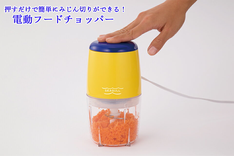 簡単操作の電動フードチョッパー!! 押すだけで簡単に料理の下ごしらえが出来ます。 肉や魚のミンチ、野菜のカット等に最適です。 ・連続使用時間:約60秒 ・最大調理量:肉・・・約150g、野菜・果物・・・カップの半分を目安 商品仕様 【材質】ステンレス:ABS、ふた:PP、カップ:PC、回転刃:ステンレス鋼 【サイズ】幅10.5cm×奥行10.5cm×高さ20.5cm 【重量】750g 【セット内容】本体、ふた、カップ、替え刃×2、取扱説明書 【電源】AC100V 【消費電力】120W 【コード長さ】95cm 電動フードチョッパー みじん切り 電動 フードプロセッサー コンパクト チョッパー みじん切り器 スムージー 小型 卓上 キッチン 便利グッズ