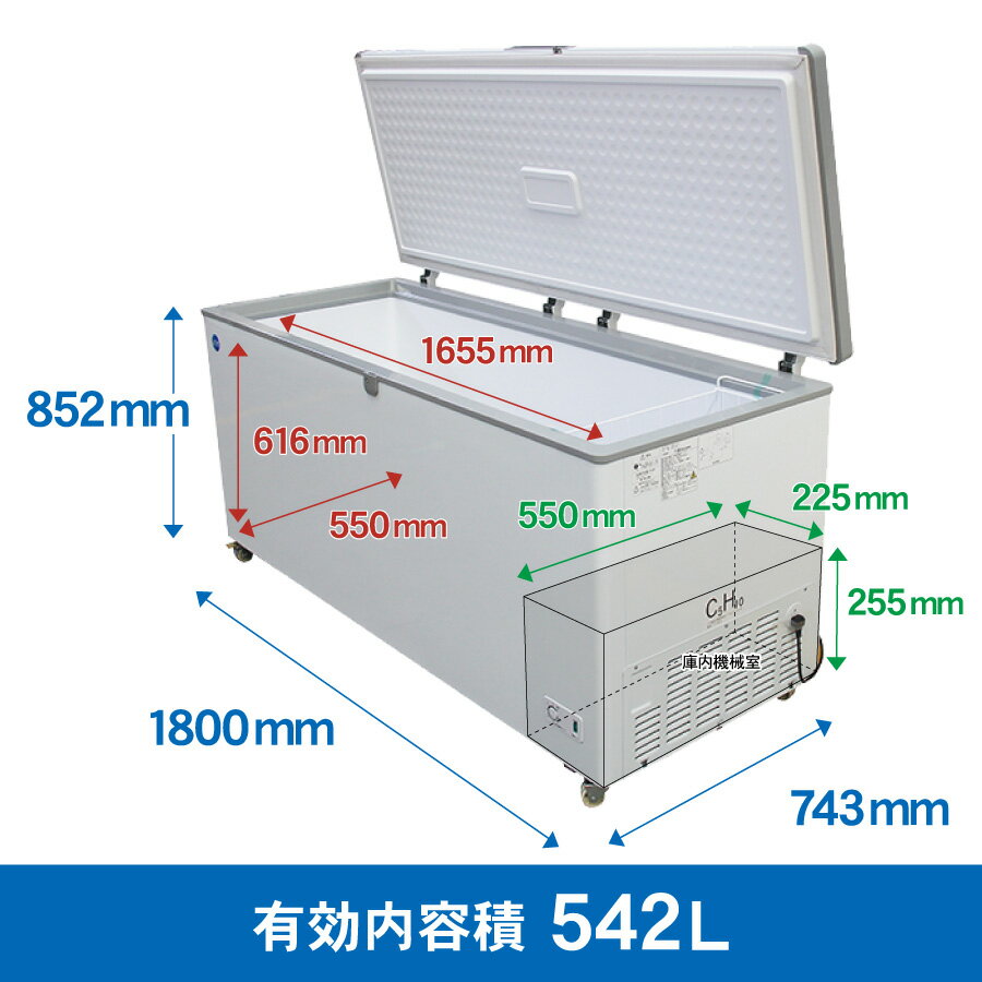 JCM 冷凍ストッカー JCMC-556 業務用 ジェーシーエム 冷凍庫 大容量 大型 食品ストッカー フリーザー チェストフリーザー 保存 貯蓄 保冷庫 542L 幅1800×奥行743×高さ852mm ノンフロン 一年保証