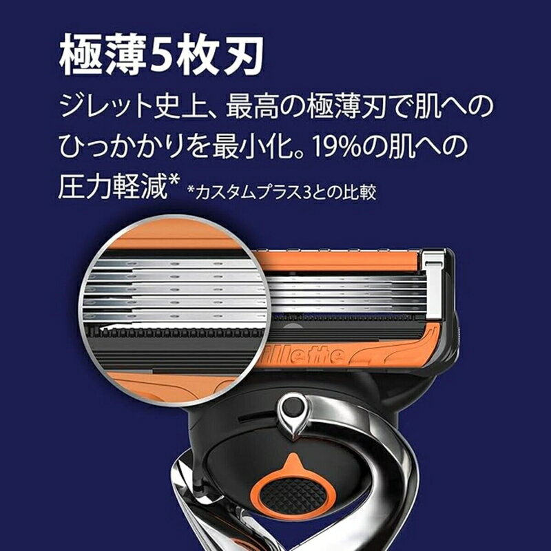 < ご注文前の確認事項 > ・ご注文後に欠品する場合もあります。 ・出荷元の都合により出荷が遅れる場合もあります。 ・送料無料は、北海道、沖縄、離島は対象外となります。 --------------------------- ジレット5枚刃カミソリ・深剃りタイプ 肌の凹凸に密着 剃り残しゼロへ最大20日間*深剃りできる長持ち刃。20日間切れ味長続き。 *1日1回のシェービングフレックスボール搭載ジレット独自の+1ピンポイントトリマー 剃りづらい部分の仕上げを簡単に極薄刃で肌へのひっかかりを最小化。 (*カスタム3 との比較)替刃交換の目安は1コ-一ヵ月* *カートリッジの消費データに基づく使用可能期間(ジレット調べ)商品紹介ジレット5枚刃シリーズ・深剃りタイプ 精密な、最適可動域 24度のフレックスボールヘッド搭載 肌の凹凸に密着 剃り残しゼロへジレットのカミソリと替刃のラインナップは、快適なシェービング・髭剃りのための最先端テクノロジーにより設計されています。安全警告 刃物です。シェービング以外の目的に使用しないでください。 使用後は刃先を洗って、よく水を切り、お子様の手の届かないところに保管してください。 ご使用の際には、弊社製シェービングジェル等をご使用の上、刃を横滑りさせないよう十分ご注意ください。 ホルダーを落としたりした場合、刃を損傷することがあります。そのような場合は、新しい替刃と交換してご使用ください けがの原因になりますので、改造、分解はしないでください。
