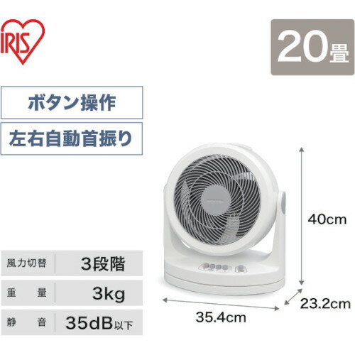 特長 ●直径23cmの大型のファンで、パワフルな風で空気を循環させ、夏は冷房、冬は暖房効率を上げ一年中使えます。 ●自動で左右に首を振る首振り機能付です。 ●静音モード搭載で35dB以下の静かなサーキュレーターです。 ●事故・ケガ防止のため羽根に指が届きにくい安全設計です。 用途 ●室内の空気循環に。 仕様 ●電源(V):単相100 ●消費電力(W)(50/60Hz):28/29 ●ハネ径(cm):23 ●色:ホワイト ●幅(mm):354 ●奥行(mm):232 ●高さ(mm):400 ●電源コード長さ(m):1.4 ●首振り:上下110°、左右90° ●風量調節:3段階 ●適合床面積:20畳 ●標準消費電力料金(50Hz):0.8円/h ●標準消費電力料金(60Hz):0.9円/h ●標準消費電力料金(50/60Hz)(円/h):0.76/0.78 ●最大風量(50/60Hz):24.7[[M3]]/min/28.1[[M3]]/min ●首振りタイプ:上下110°手動、左右90°自動 ●適用床面積:20畳 ●風量調整:3段階 材質 ●ポリプロピレン(PP)、HIPS、ABS樹脂 質量・質量単位 ●3.0kg 【メーカー名】アイリスオーヤマ(株) 【メーカー品番】PCF-HM23-W