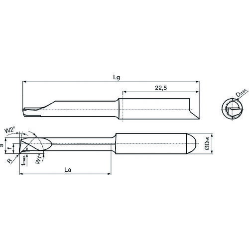 用途 ●アルミ、銅、プラスチック用。 仕様 ●接続径DCON(mm):8 ●勝手:左 ●R(mm):0.1 ●W1(°):47 ●W2(°):8 ●f(mm):3.7 ●a(mm):7.7 ●t max(mm):1 ●La(mm):27 ●Lg(mm):52 ●D h6(mm):8 ●表面処理:無処理 ●GT108.4777.010.27.80.L 材質 ●超硬 質量・質量単位 ●30.0g 【メーカー名】グーリングジャパン(株) 【メーカー品番】27207 8.031