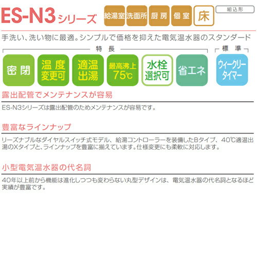 日本イトミック 小型電気温水器 ES-N3シリーズ 床置 先止め式 キッチン用 単相200V 1.1kW 5.4L わきあげ温度:30〜75度 配管向き:右 タイマー付 ES-VN3BX(3) 単相200V 1.1kW 右配管