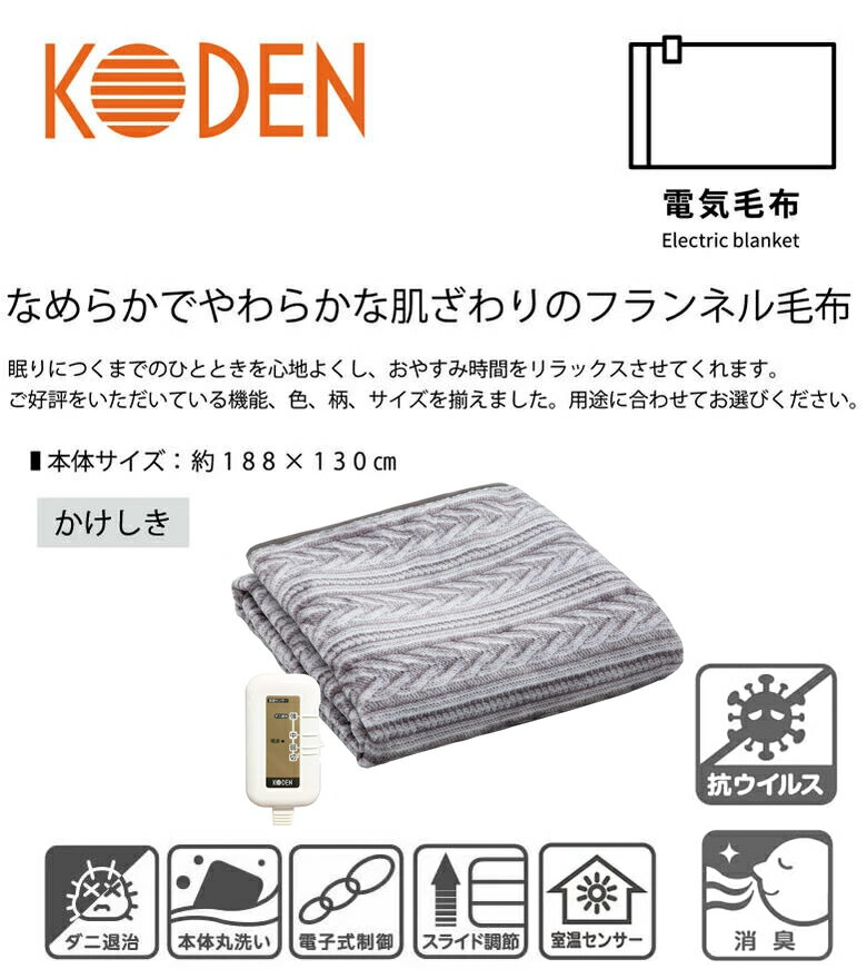 広電 掛け敷き 電気毛布 洗える 188×130cm 無地 室温センサー搭載【在庫あり】広電 電気掛敷毛布 KODEN CWB801R-HVAD グレー