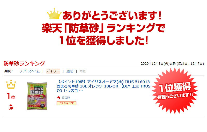 納期について:メーカー直送品(代引き不可)【DIY 工具 ツール トラスコ中山 オレンジブック TRUSCO 工事book トラスコ 庭 防草 砂 水 土 除草 対策 防草砂 ぼうそうすな 雑草対策 水通す 駐車場 固まる土 サンド】メーカー名:アイリスオーヤマ(株)【 特長 】・水をかけるだけで約24時間で固まる防草砂です。・薬品不使用にて、環境にも優しいです。【 用途 】・防草に。 仕様品名 IRIS 516013 固まる防草砂 10L オレンジ品番 10L-OR容量(L) 10色 オレンジ容量(g) 110001m[[の2乗]]あたり約3〜4袋が目安【 材質/仕上 】セメント、珪砂、顔料質量 11kgJANコード 4905009826995