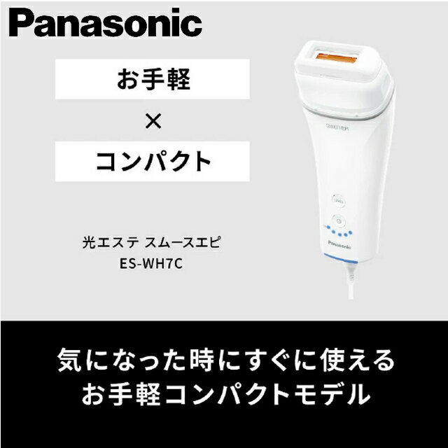 パナソニック スムースエピ ES-WH7Cの特徴 ■サロンと同様のIPL技術で、ムダ毛ケア。 スムースエピシリーズのコンパクトモデル。 ■サロンと同様のIPL技術でムダ毛と美肌へアプローチ 黒い色に反応するIPLフラッシュで毛先に熱エネルギーを与え、ムダ毛に集中照射。同時に、使い続けることで良好な肌サイクルを保ち、くすみの原因となる角質をはがしやすくして美しい肌へ。 ■コンパクトで手軽にケアしてスベスベ肌へ コンパクト・軽量なので、ラクラクお手入れ ■コンパクトでも、広範囲のムダ毛を一気にケア ボディ・Vゾーン用アタッチメントは5.4 ?の広範囲照射で、ワキ・腕・脚など様々な部位に使用可能。スピーディーにお手入れできます。 ■ボタンプッシュレス照射&スライド連続照射 照射面を肌に水平に押しあてるだけで照射できます。さらに、そのままスライドすれば、10回まで連続照射可能。お手入れラクラク、スピーディーに光ケア。 ■VIOから顔・ヒゲまで1台で全身対応 電源方式交流式 電源・電圧AC100〜240V(自動電圧切替付) 50-60Hz 消費電力約25W(照射準備時) 連続使用回数約600回 光ケア○ランプカートリッジ交換不要(ランプ寿命 約30万回) アタッチメントボディ・Vゾーン用アタッチメント I・Oゾーン用アタッチメント フェイス用アタッチメント 使用できる部位脚 腕 ワキ 手 胸 お腹 Vゾーン Iゾーン Oゾーン 顔(ヒゲ含む) 使える毛色黒・茶・暗い金色 出力設定5段階出力 海外使用○★1 本体寸法高さ16.3×幅6.9×奥行4cm(アタッチメント装着時) 質量約230g コードの長さ約1.8m(ACアダプター) 生産国日本(本体のみ) パッケージ寸法高さ20×幅14.4×奥行6.9cm 安全に関するご注意必ず「使用できる部位」だけに使用する。 ●次のような部位には使用しない ・目の周り、眉周り、耳、唇、のど、頭 ・乳首、乳輪、へそ ・大陰唇以外の性器(女性)、男性器、肛門、粘膜 >>やけど・肌や身体のトラブルの原因になります ・入れ墨 >>やけどによるケロイドや赤くなるなどの炎症の原因になります ・日焼けした肌、肝斑(かんぱん)、シミ、ほくろなど暗褐色または黒色の肌部分 ・かさぶた、傷、湿疹、あざ、いぼ、吹き出物、皮膚がん、タムシ(白せん)、毛のう炎・毛包炎、かぶれ、虫刺されなど ・血管腫・美容整形部位 ・同じ箇所に繰り返し照射しない(ムダ毛を目立たなくする効果が感じにくい場合でも、3日に1回を限度に使用する) >>やけどや肌トラブルの原因になります ●次のような人は使用しない ・ペースメーカーなどの体内植込み型医用電気機器をお使いの方は、本体とコントローラーを医用電気機器に近づけない >>事故や体調不良の原因になります ・妊娠中または妊娠している可能性がある人 >>事故や肌トラブルの原因になります ・生理中、授乳中の人 >>ホルモンバランスが不安定なため肌トラブルの原因になります ・皮膚知覚障害の人 ・アトピー性皮膚炎、湿疹、ヘルペスなど皮膚疾患のある人 ・アレルギー体質の人、化粧品・衣類・金属などにかぶれやすい体質の人 ・太陽光で肌が荒れやすい人 ・自分で意思表示ができない人 ○薬を服用されている人は、服用後、1週間はあける ○薬を継続して服用されている人は皮膚科医に相談する >>服用される薬によっては肌が光刺激に敏感になり、肌トラブルの原因になります ○成長期の子供は使用しない。18歳未満の人が使用する際は、保護者が取扱説明書を読み、正しい使いかた・禁止事項を指導する。 >>やけどや肌トラブルの原因になります 海外でご使用の場合には、国や地域に合わせて別途プラグアダプターをお買い求めください