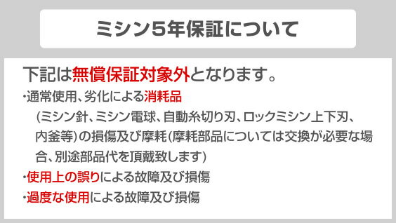 メーカー希望小売価格はメーカーカタログに基づいて掲載していますMO-50EN 商品説明シリーズ オーバーロックミシン仕様・特徴 はじめてさんにも安心!気軽に始める4本ロック家庭用ミシン2本針4本糸差動送り付き縫製スピード:1300針/分4本糸オーバーロック3本糸オーバーロック全巻き縫い細ロック縫い使用針数:1、2本使用針:ELx705使用糸数:3、4本差動送り比:0.8〜N〜2.0下ルーパー糸通し装置巻き縫い切替え:ワンタッチ(レバー式)上メス解除メス幅調節ライト:白熱球/1箇所押え上げ高さ(1段階 / 2段階):レバー式 5mm/6mmぬい目の長さ:1〜4mm (標準: 2.5mm)かがり幅:4本糸/5〜7mm 、3本糸/左針:5〜7mm、右針:3〜5mm(巻き縫い:2mm)布くず受け箱:同梱操作サポート:DVD同梱サイズ 外形寸法(幅×高さ×奥行mm)292×290×295重量 6.7kg付属品ドライバー/ ピンセット/ 掃除用ブラシ/ 針セット(EL 7 05)/ ネット/ 糸コマ押え/ 布屑受け箱/ 六角レンチ/ 上メス/ コントローラー/ ミシンカバー