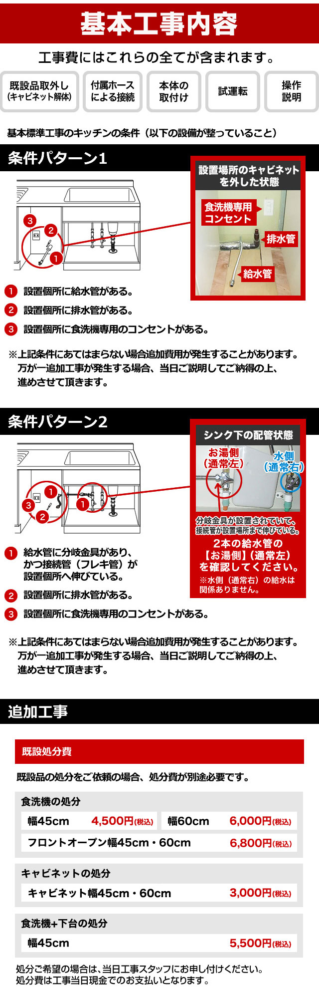 ▼この商品の関連商品はこちら≪GUARANTEE-DISH-5YEAR≫≪GUARANTEE-DISH-8YEAR≫≪ORG-DOOR-PANEL-WHITE≫≪ORG-DOOR-PANEL-MARINE-BLUE≫≪ORG-DOOR-PANEL-AKANE-RED≫≪ORG-DOOR-PANEL-CHOCO-BROWN≫≪ORG-DOOR-PANEL-STAINLESS≫≪ORG-DOOR-PANEL-BLACK≫【キーワード】食器洗い機 / 食洗機 / ビルトイン食洗機 / 商品+基本工事費セット / 取り付け工事込み / ドアパネル / コンパクト / スライド 【 RKW-404A-SV の後継品 】RKW-405A-SV-KJ 商品説明シリーズ 標準スライドオープンタイプ食器洗い乾燥機カラー シルバー仕様・特徴 使いやすくなった食器カゴ。標準スライドオープンタイプ食器洗い乾燥機ドアタイプ:ドアパネルタイプ (化粧パネル対応)庫内形状:コンパクトタイプ(ミドルタイプ)食器点数:食器点数:約5人分(40点)幅:幅45cm奥行65cm以上42/44(50/60Hz)(標準コース)(dB(A))ドアの開き方:スライドオープン運転コース:4コース(標準/念入り/乾燥/予約※4時間後)消費電力:最大665W(50Hz)/685W(60Hz)標準使用水量:約9Lオールトップコントロールクイックスタートバイタル除菌洗浄機能銀イオンカートリッジ対応※別売ソフト排気からっとキープまな板(最大200×400×15mm)をサイドに立てて入れられる乾燥方式: ヒーター間欠通電+強制送風別売の専用収納キャビネットが必要な場合がございますサイズ 外形寸法(高さx幅x奥行き) : 450mm×448mm×620.5mm重量 18kg商品構成 食器洗い乾燥機:RKW-405A-SV×1工事費:CONSTRUCTION-DISH×1発売日 2021年12月旧品番 RKW-404A-SV の後継品 関連情報 RSW-405A-SV / RSW-405AA-SV の同グレード品