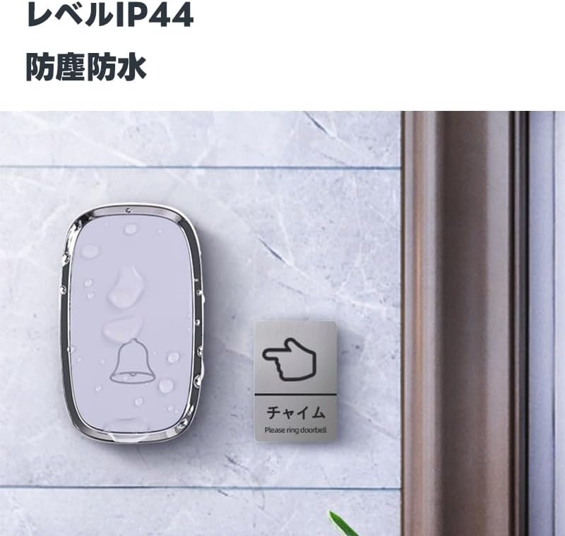 商品情報商品詳細【広範囲かつ安定した信号伝送】最大250~300mの無線範囲に対応し、高感度受信機を採用。壁やドアを通しても安定した信号を伝送でき、広い住宅や複数階の建物でも安心して使用可能。一対一の信号ペアリング技術を搭載しており、他のデバイスとの干渉や誤作動の心配もありません。【音声と光によるデュアル通知機能】音声アラームとLEDインジケーターによる光通知の2種類の方式を採用。音だけでなく、光でも来客をお知らせするため、高齢者や聴覚障害者の方にも安心して使用いただけます。夜間や暗い場所でもLEDライトが視認性を確保し、どの時間帯でも便利です。【36種類の選べるメロディー&音量調整】36種類の豊富なメロディーからお気に入りの音を選べ、家族の好みに合わせてカスタマイズ可能。音量は5段階(0~110dB)で調節でき、静音モードも対応。赤ちゃんの睡眠中や静かな環境が必要な場面でも安心して使用できます。【2つの受信機と1つの送信機で柔軟な運用】2つの受信機と1つの送信機が付属しており、玄関やリビングなど複数箇所で同時に使用可能。簡単な設計で、設置や設定が直感的に行えます。追加の受信機も導入可能で、さらに広いエリアに対応可能。【IP44防水防塵設計&過酷な環境にも対応】IP44規格に準拠した防水・防塵性能を備え、屋外や湿気の多い場所でも安心して使用可能。-20°C~+50°Cの幅広い使用温度範囲に対応しており、寒冷地や高温環境でも正常に動作します。長期間にわたり安定した性能を提供し、耐久性に優れた設計です。ワイヤレスチャイム 36曲選択可能 4段階音量調節 防水 大音量0dB~100dB調整可能 玄関チャイム 呼び鈴 介護 飲食店 浴室などに適用 防水 防塵 最高300M無線範囲 ドアベル チャイム ワイヤレスチャイム チャイム 呼び出しベル 工事不要 ンセント式 介護 防水 防塵 5