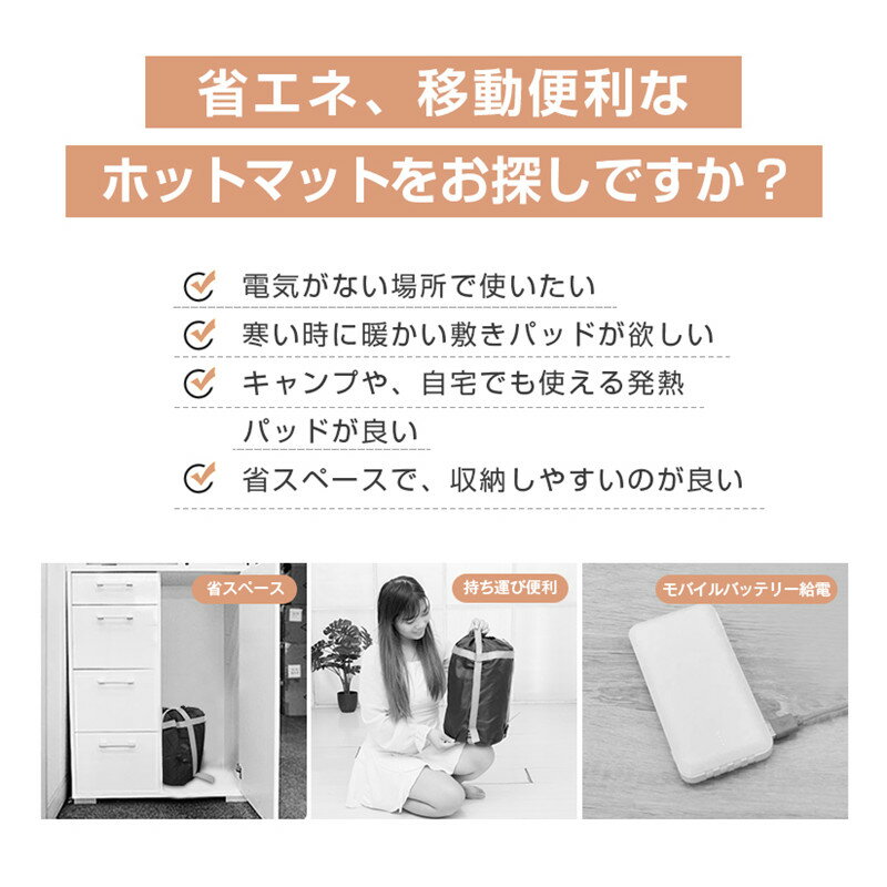 発熱マット 電熱マット 寝袋用 収納バッグ付き キャンプ 車中泊 登山 防災 自宅 丸洗い可 モバイルバッテリー給電 寒さ対策 USB アウトドア 送料無料 モバイルバッテリー別売り