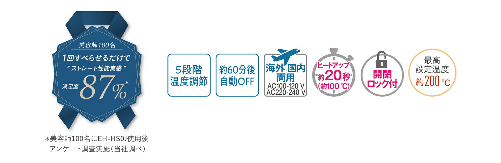商品情報メーカー名パナソニックサイズ本体寸法高さ26.7×幅3.15×奥行4.2cm質量約380gスペック電源方式交流式消費電力AC100-120 V / AC220-240 V:41 W※1AC 100-120 V時:約0.1 W-約385 WAC 220-240 V時:約0.1 W-約455 Wアイロン部温度約130/155/170/185/200 ℃(5段階)ヒートアップ(約100℃)約20秒仕上がりストレート海外使用コーティングスムースグロスコーティングプラス〔髪への効果〕○キューティクルへの摩擦低減○髪に効率よく熱を伝える○髪のツヤ感○しっとり感○毛先のまとまり感機能ナノイー3D密着プレート自動電源OFF(約60分後)開閉ロックコードの長さ約1.7m(360°回転式コード)付属品掃除用ブラシ商品説明スルッと瞬間パワーストレート!摩擦ダメージを抑えながら、1回すべらせるだけで仕上がり別格。ツヤめくストレートが夜まで続く。3つの温度コントロール機能と「3D密着プレート」で、1回のストレート性能20%アップ摩擦ダメージを軽減し、キューティクルの損傷を防ぐ。スムースグロスコーティングプラスで、すべりやすさ30%アップ。進化したナノイー発生ユニットで、イオンの放出効率が向上。毛先まで、さらにしっとり感アップ注意事項モニターの発色具合により、実際の商品と色が異なって見える場合がございます。パナソニック Panasonicストレートアイロン ナノケア EH-HS0J-W(白)[交流コード式] 摩擦ダメージを抑えながら、1回すべらせるだけで仕上がり別格。ツヤめくストレートが夜まで続く。 ■「3つの温度コントロール機能と「3D密着プレート」で、1回のストレート性能20%アップ■摩擦ダメージを軽減し、キューティクルの損傷を防ぐ。スムースグロスコーティングプラスで、すべりやすさ30%アップ。■進化したナノイー発生ユニットで、イオンの放出効率が向上。毛先まで、さらにしっとり感アップ 2