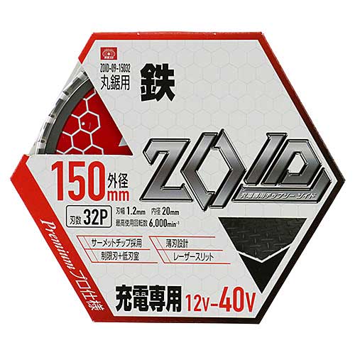 【特長】 ●充電丸鋸12~40V専用です。 【用途】 ●充電丸鋸等を使用して金属の切断。 【仕様】 ●外径:150、刃数:32、刃幅:1.2、内径:20。 ●サーメットチップ採用で超硬に比べ超耐久2倍を実現。 ●最適刃数で薄物の切断もきれい。 ●薄刃設計で切削抵抗を軽減し振動を抑制する。 ●レーザースリットは振動を抑制し騒音を大幅軽減する。 ●サイズ:幅150×高さ2×奥行き150mm ●重量:140g 【納期】 メーカー取り寄せのため、納期3〜5日(営業日)で出荷します。 ※規格clickでページ移動します 品名 規格 ZOIDチップソー 金属SD ZOID-02-10040 ZOID-02-12550 ZOID-02-15060 ZOIDチップソー パーチ窯業 ZOID-03-10016 ZOID-03-12518 ZOID-03-15020 ZOID-03-16524 ZOIDチップソー 窯業PCD ZOID-04-10008 ZOID-04-12508 ZOID-04-15008 ZOIDチップソー キッチンP ZOID-05-10046 ZOID-05-12556 ZOID-05-15064 ZOIDチップソー 石膏ボード ZOID-06-10028 ZOID-06-12532 ZOID-06-15040 ZOIDチップソー PC ZOID-07-10036 ZOID-07-12548 ZOID-07-15056 ZOIDチップソー ホーロー ZOID-08-10046 ZOID-08-12556 ZOID-08-15064 ZOIDチップソー 木工用 ZOID-01-12535 ZOID-01-12550 ZOID-01-12556 ZOID-01-16545 ZOID-01-16560 ZOID-01-16570 断熱材用丸鋸刃フラット4 125mm 147mm 165mm 190mm 石膏ボードカッター 100 SBC-100 石膏ボードカッター 125 SBC-125 鉄TETSU 鉄切チップソー 100X1.6X20P 125X1.6X26P 160X1.8X32P ZOIDチップソー 鉄用 ZOID-09-12528 ZOID-09-15032
