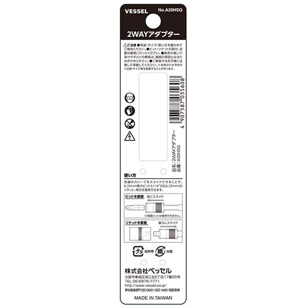 【特長】 ●前にスライドでビット、後ろにスライドでソケット、ソケットもビットも使える2WAYドライブ ●ラチェットドライバーのエクステンションに便利 ●電動工具で使える18V対応 【仕様】 ●先端が2WAY!(差込部が六角6.35mm&四角1/4)、使い方も2WAY!(手回し工具/電動工具) ●全長(mm):100 ●質量:46g 【セット内容】 ●アダプター(H6.35/SQ1/4)×100mm×1