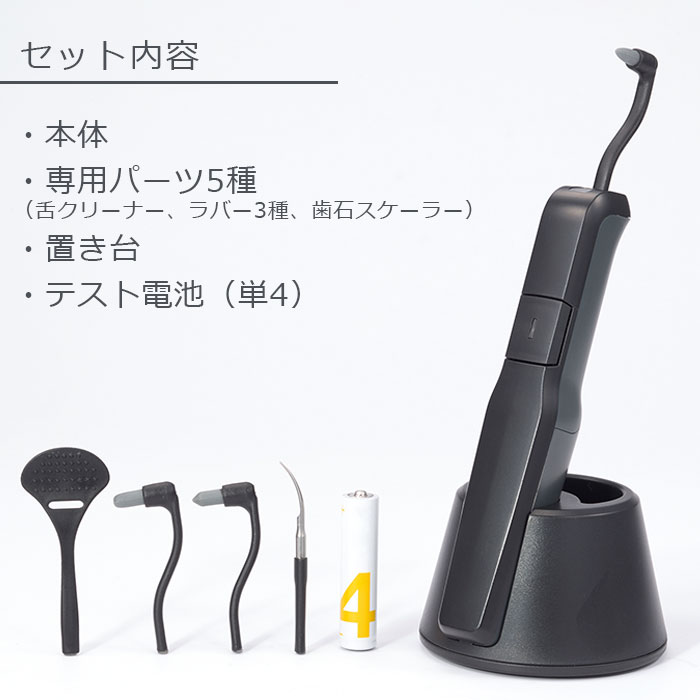 ■■■■■■■■■■■■■■■■■■■■■■■■■■■■■■■■■■■■■■ ※北海道への配送の場合は、別途送料+1,000円をいただいております。 ※沖縄県・離島への配送の場合は、別途送料+2,590円をいただいております。 ※お客様都合による変更、キャンセル、返品不可でございますのでご了承くださいませ。 ※商品への光の当たり方やご利用のモニター環境により、色味が異なって見える場合がございます。 その場合でも返品・交換はお断りしておりますのでご了承くださいませ。 ■■■■■■■■■■■■■■■■■■■■■■■■■■■■■■■■■■■■■■ 電動で歯の隙間までしっかりケア! ~1分間に約1万回の振動~ 1分間に15,000回の振動でヤニ、歯石、歯垢を取り除くのに効果的 ~LEDライト付き~ LEDライト付きで歯の隙間の汚れまで見やすく当てやすい ~5本のアタッチメント~ 5本のアタッチメントを使い分けることで、あらゆる隙間の汚れにも対応 ~立てて置けるスタンド付き~ ◇商品仕様◇ 【セット内容】本体、専用パーツ5種、置き台、テスト電池(単4) 【サイズ】約幅7×奥行7.5×高さ17.5cm 【重 さ】約76g 【材 質】本体:ABS、舌クリーナー:ABS、ラバー3種:TPE、ABS、歯石スケーラー:SS304、ABS 【振動数】250Hz 【回転数】15000rpm 【連続使用時間】4~6時間(1日3分で約2か月) 【保証期間】3か月(※使用後返品不可) 【商品番号】EL-20084 【JAN】4533478220084 【生産国】中国