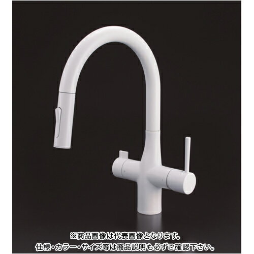 【メーカー】 ●(株)KVK 【特長】 ●タンブラー式切替構造:タンブラー式のボタン切替によりストレート吐水とシャワー吐水の切替が簡単にできます。 ●シャワーヘッド引出し:コンパクトなシャワーヘッドは引き出しができ、広いシンクの掃除も楽にできます。 ●シャワー吐水:節水効果のあるシャワーは、きめが細かく、水ハネが少ない食器洗いに最適なシャワーです。 ●新構造のストレート吐水:中央部からのシャワー吐水を外周部からの吐水で束ね、ストレート吐水にしています。 ●広い吐水口空間:大きく広い吐水空間がとれますので、大きな鍋やフライパンが楽に洗え使い勝手に優れています。 ●本体左側の浄レバーを上げると浄水が出ます。 【仕様】 ●eレバー水栓(レバー中央水吐水) ●ブレードホース・クイックファスナー式 ●吐水回転規制:160° ●シャワー引出し式 ●カラー:マットホワイト ●水栓と浄水器(Z38450)のセット ●JIS規格 ●逆止弁付