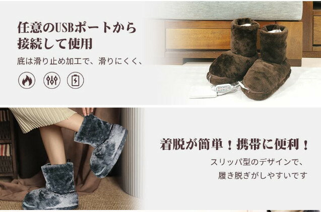 商品名 足温器 USB 足元ヒーター フットウォーマー 給電式 スリッパ 冬用 3段階調整切替 タイマー機付き 足冷え対策 ホットフットヒーター 内蔵モバイルバッテリー ルームシューズ タイマー機能 自宅 部屋用 子供 職場用 両足用 男女兼用製品仕様【温度3段階調節可+タイマー3段階設定可 温度制御】温度とタイマーを調整できるコントローラーを搭載し、自由に温度と時間を調整できます。通電後、40~55℃の3段階で自由に切り替えできます。55℃に達すると保温され続けています。タイマーは1 H/1.5 H/2 H/ON(時間制限なしモード)の4モードの間で切り替えできます。最大設定可能な時間はON(時間制限なし)です。設定した時間になると自動的に電源オフになりますので、電源を切り忘れても安心して使えます。安全な足温器です。【炭素繊維加熱採用、保温性がより高い】普通のスリッパだけでなく、電熱スリッパも利用できます。加熱芯や接続部分を強化され、耐久性が大幅に向上!USBポートに接続すると温度は5Sで発熱できます。加熱保護もついているので、絶縁で安全性もあり、暖房の代わりに省エネで環境にもやさしいです。 じんわりと全体をぽかぽかにさせて、体の血循環を促進させます。冷え性の方に見逃せない一品です。【5V USB給電式足温器 安全安心】USB給電式で、AC電源とUSBプラグを接続するだけで簡単に使えます。人体の安全電圧よりはるかに低い5V電圧を採用しています。市販の焦げや壊れやすい電熱線を改良して、補強された電熱線を採用しています。また、接続部分を補強し、耐久性を著しく向上させています。過熱防止機能を搭載しているため、安心してご使用いただけます。【滑り止め&洗濯可能、USB給電で持ち運び便利】粗悪な素材を一切使わず、手触りは絹のように滑らかで柔らかいです、やわらかな肌触りを実現できました。下部の粒状デザイン、滑り止め加工が施されているので、使用でも滑りにくいです。底部には内蔵されたヒーターを取り出してから、カバーは洗濯できます。滑り止め加工で、安定性が優れています。静音で、仕事や勉強に集中できます。商品名 足温器 USB 足元ヒーター フットウォーマー 給電式 スリッパ 冬用 3段階調整切替 タイマー機付き 足冷え対策 ホットフットヒーター 内蔵モバイルバッテリー ルームシューズ タイマー機能 自宅 部屋用 子供 職場用 両足用 男女兼用製品仕様【温度3段階調節可+タイマー3段階設定可 温度制御】温度とタイマーを調整できるコントローラーを搭載し、自由に温度と時間を調整できます。通電後、40~55℃の3段階で自由に切り替えできます。55℃に達すると保温され続けています。タイマーは1 H/1.5 H/2 H/ON(時間制限なしモード)の4モードの間で切り替えできます。最大設定可能な時間はON(時間制限なし)です。設定した時間になると自動的に電源オフになりますので、電源を切り忘れても安心して使えます。安全な足温器です。【炭素繊維加熱採用、保温性がより高い】普通のスリッパだけでなく、電熱スリッパも利用できます。加熱芯や接続部分を強化され、耐久性が大幅に向上!USBポートに接続すると温度は5Sで発熱できます。加熱保護もついているので、絶縁で安全性もあり、暖房の代わりに省エネで環境にもやさしいです。 じんわりと全体をぽかぽかにさせて、体の血循環を促進させます。冷え性の方に見逃せない一品です。【5V USB給電式足温器 安全安心】USB給電式で、AC電源とUSBプラグを接続するだけで簡単に使えます。人体の安全電圧よりはるかに低い5V電圧を採用しています。市販の焦げや壊れやすい電熱線を改良して、補強された電熱線を採用しています。また、接続部分を補強し、耐久性を著しく向上させています。過熱防止機能を搭載しているため、安心してご使用いただけます。【滑り止め&洗濯可能、USB給電で持ち運び便利】粗悪な素材を一切使わず、手触りは絹のように滑らかで柔らかいです、やわらかな肌触りを実現できました。下部の粒状デザイン、滑り止め加工が施されているので、使用でも滑りにくいです。底部には内蔵されたヒーターを取り出してから、カバーは洗濯できます。滑り止め加工で、安定性が優れています。静音で、仕事や勉強に集中できます。