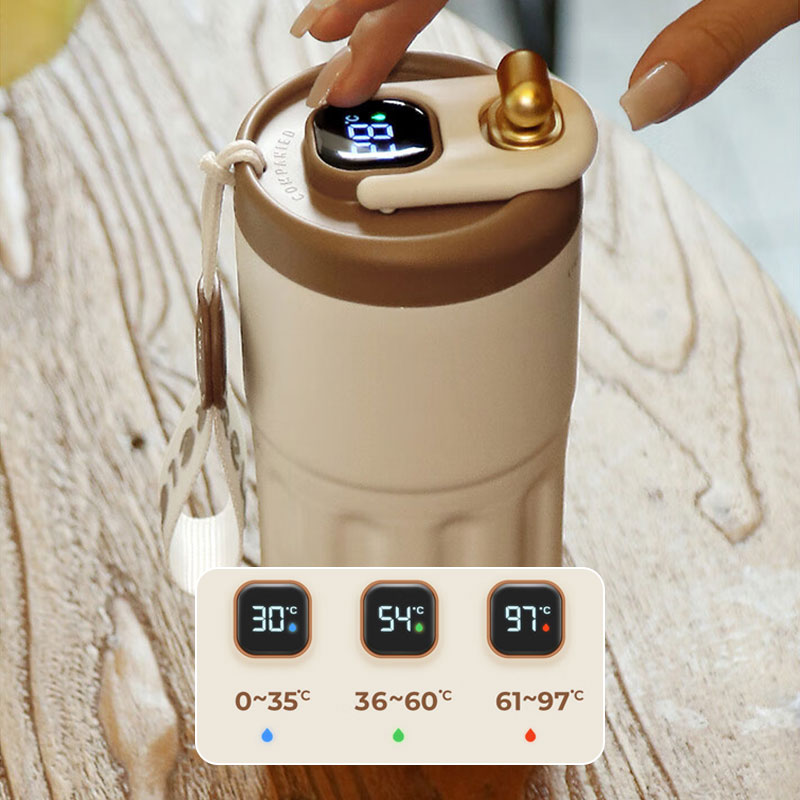 電気ケトル 魔法瓶 温度表示 保温保冷コーヒー魔法瓶 410ml コーヒー魔法瓶 Coffee 温度計 魔法瓶 温度表示付マグボトル 316密閉な内側 保温 旅行 外出 魔法瓶 漏れ防止 クリスマス