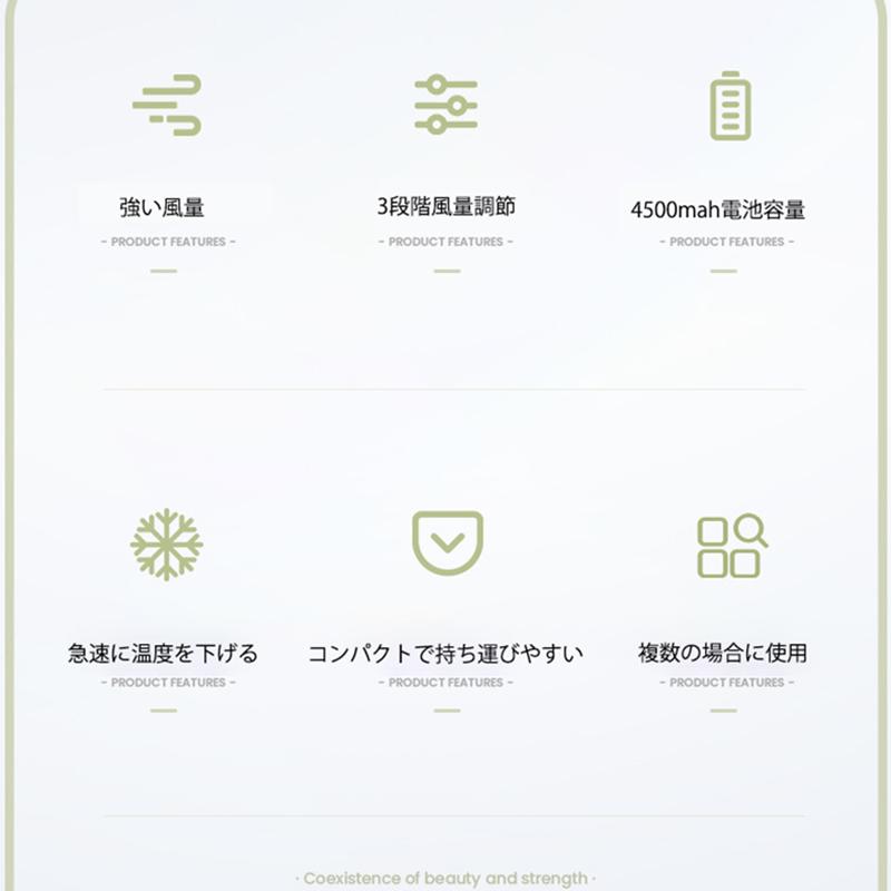 商品情報 【軽量設計】小型で軽量、持ち運びやすくいつでもどこでも快適です。 【 USB充電式】 充電時はPCや電源アダプターにUSBケーブルを接続だけで内蔵の4500mAhリチウム電池を充電できます。 【装着は自由自在】 ベルトに取付けてシャツの裾をクリップで挟んだら、服内に風を送り込めます。 【 3段階風量調節】 風量モードの強弱は3段階に切替えるので状況によって快適に調節できます。服の中を循環する風が汗を蒸発させ、体を涼しく体温の上昇を抑えます。 【使い幅は広い】夏のアウトドア、現場作業や犬の散歩、釣り、スポーツ観戦、ハイキングなど様々なシーンで大活躍。炎天下で体を動かし体力消耗の激しい方にお勧めします。メーカー希望小売価格はメーカーサイトに基づいて掲載しています