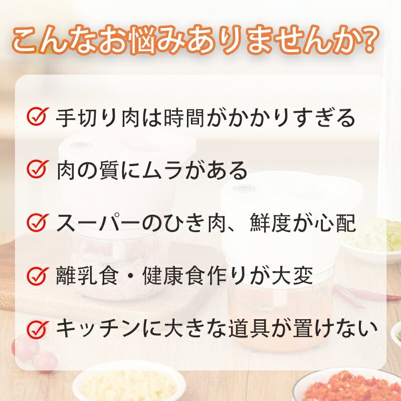 フードプロセッサー コードレス ハンドブレンダー 肉挽き みじん切り チョッパー 充電式 小型 万能 家庭用 調理 マルチマシン 多機能 キッチンミキサー 充電式 肉みじん にんにく ペースト ハンドミキサー ハンディブレンダー コードレス電動ミンチ機 チョッパー