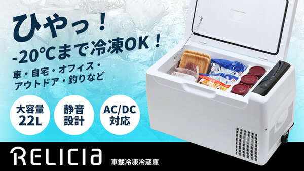 RELICIA 車載冷凍冷蔵庫 RLC-CF22 ◆送料無料◆[ポータブル冷蔵庫 ポータブル冷凍庫 車載冷蔵庫 車載冷凍庫 22L 小型冷蔵庫 アウトドア冷蔵庫 静音設計]