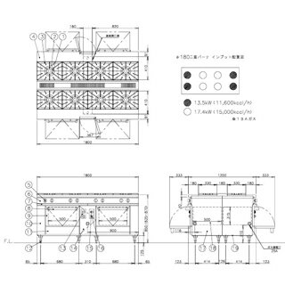 コメットカトウ ガスレンジ XY両面タイプ D=1200 レンジタイプ 1800×1200×850 XY-18128 12A・13A(都市ガス)【メーカー直送/後払い決済不可】【メイチョー】