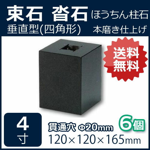 黒御影石 垂直型四角 貫通穴(20ミリ) 4寸 6個120×120×165ミリ 貫通穴あり山西黒(ほうちん) 本磨き 束石・沓石代引不可 個人様支店止め 時間指定不可オーダーメイド/つか石/建材土台/基礎石/柱石/送料無料【RCP】