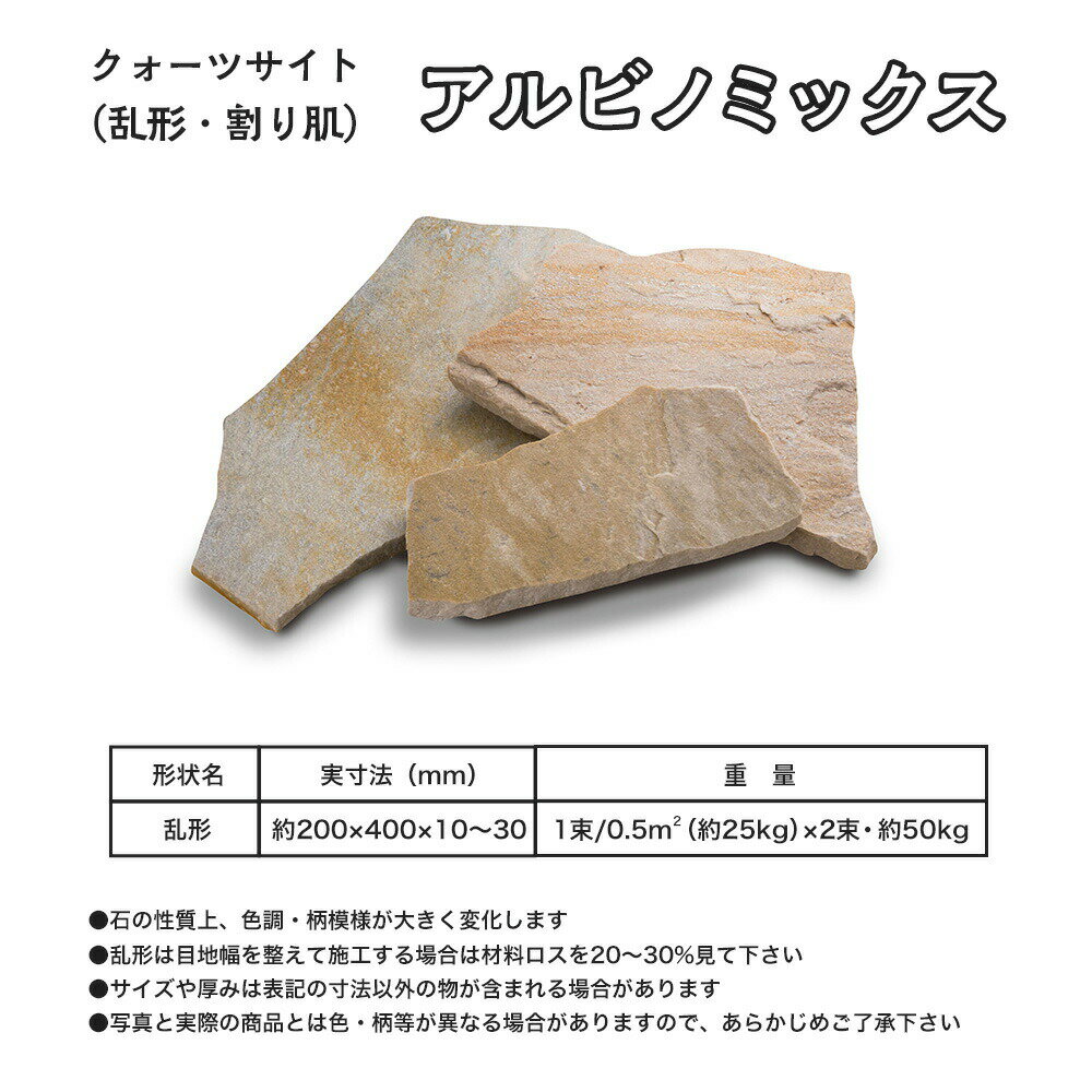 乱形石(割肌)アルビノミックス 1平米1束/0.5平米(25kg)x2束法人宛 又は 個人様支店止め代引・時間指定不可ガーデニング エクステリア 石材 DIY大理石 御影石 天然石 敷石 割肌アプローチ お庭用 ガーデンロック