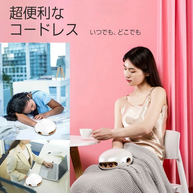 ズ:約189x169x112mm 消費電力:12W(ヒーター5W) 温熱温度: 約42℃/45℃/50℃ 素材: 表側/ABS樹脂、内側(抗菌)/ナイロン、ポリウレタン 電圧/電流:5V/1A ケアタイマー: 約10分自動OFF 内蔵バッテリ容量:2200mAh 付属品:USBケーブル 本体重量:約712g 使用目的又は効果 てのひら及び指のケア用。一般家庭で使用すること。 疲労回復、血行をよくする、筋肉の疲れをとる、筋肉のこりをほぐす、神経痛、筋肉痛の痛みの軽減 ※医療用マッサージ器ではありません。 ※説明書は外国語となります。 ※配送または仕入状況により商品の箱に凹み、スレ等がある場合がございます。パッケージ不良による交換返品は対応出来かねますので、ご了承をお願いします。